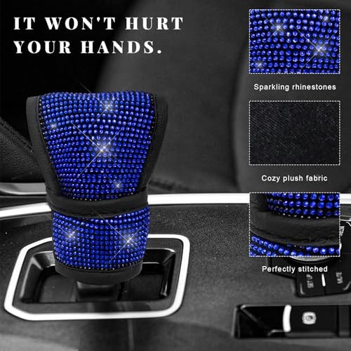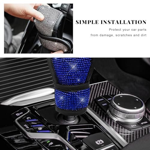 Bling Auto Gear Shift Knob Cover, Rhinestone Glitter Shifter Stick Blue