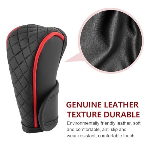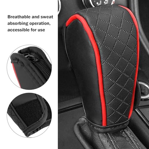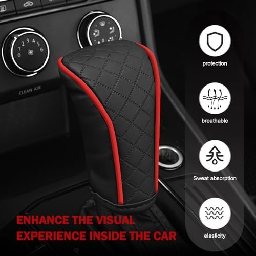 Leather Car Gear Shift Knob Cover, Anti-Slip Breathable Shifter Stick 1 PC Red