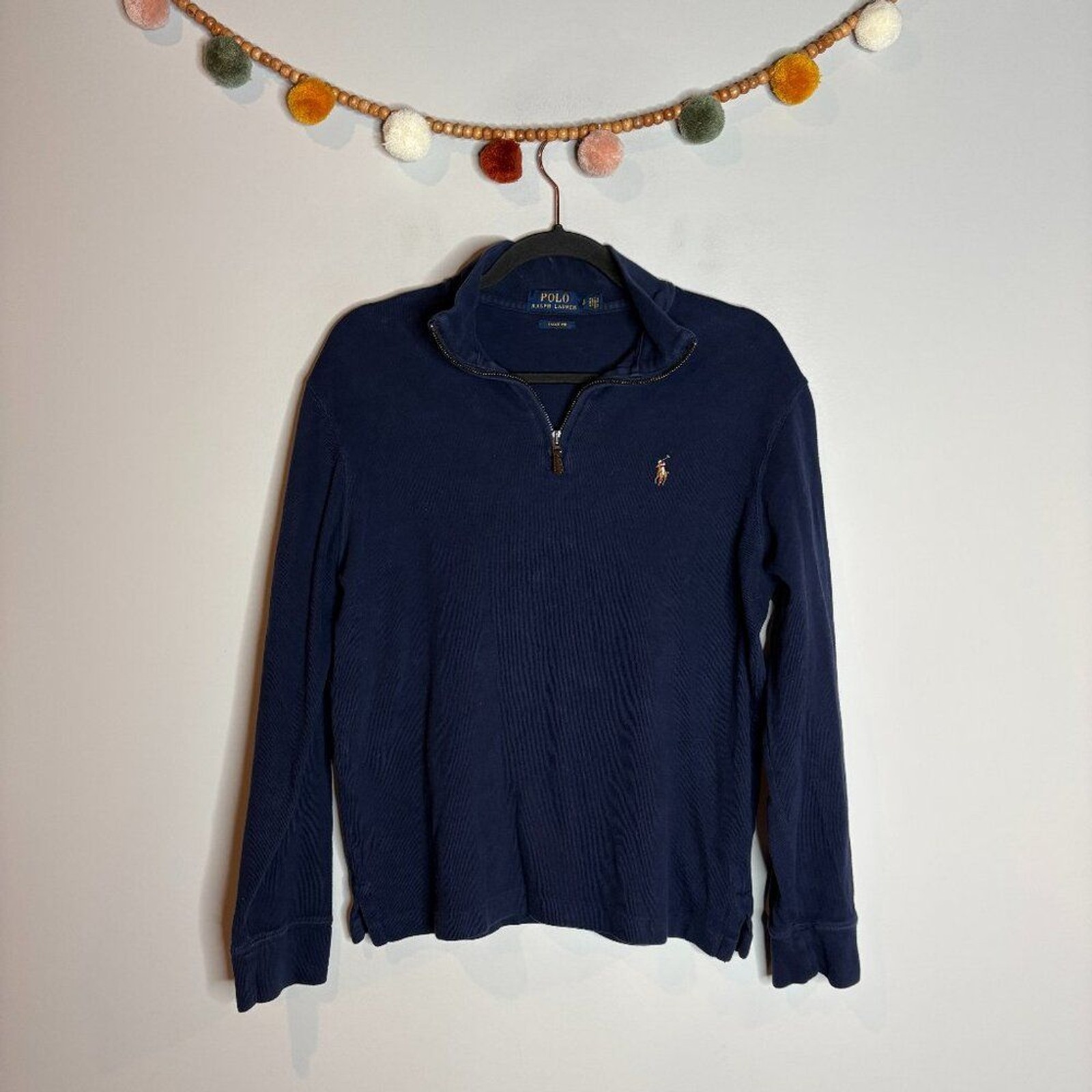 как выглядит POLO Ralph Lauren Estate-Rib Quarter-Zip Pullover in Cruise Navy фото