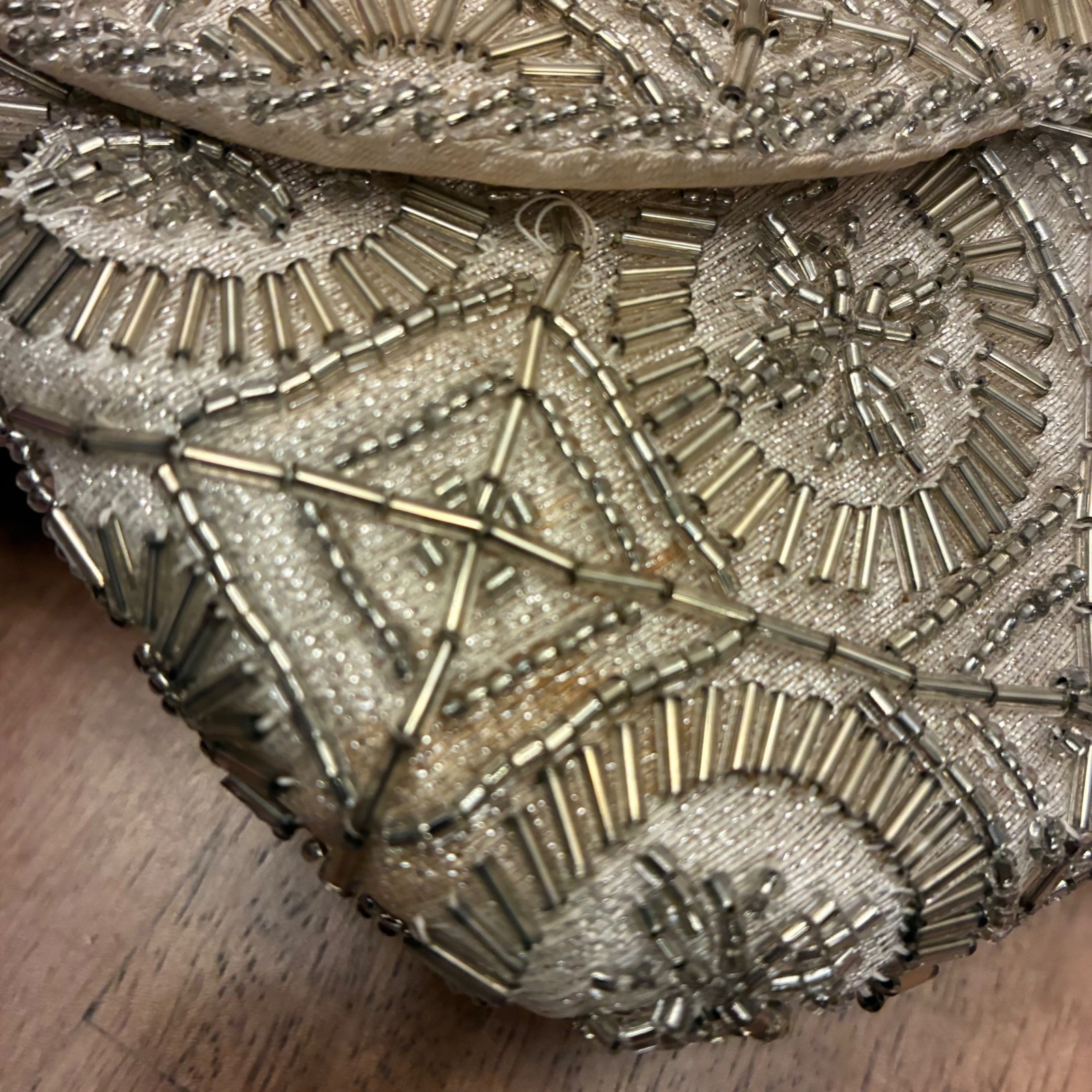 Vintage Beaded Evening Bag Silver Gold Clutch Purse Party Prom Wedding Glam
