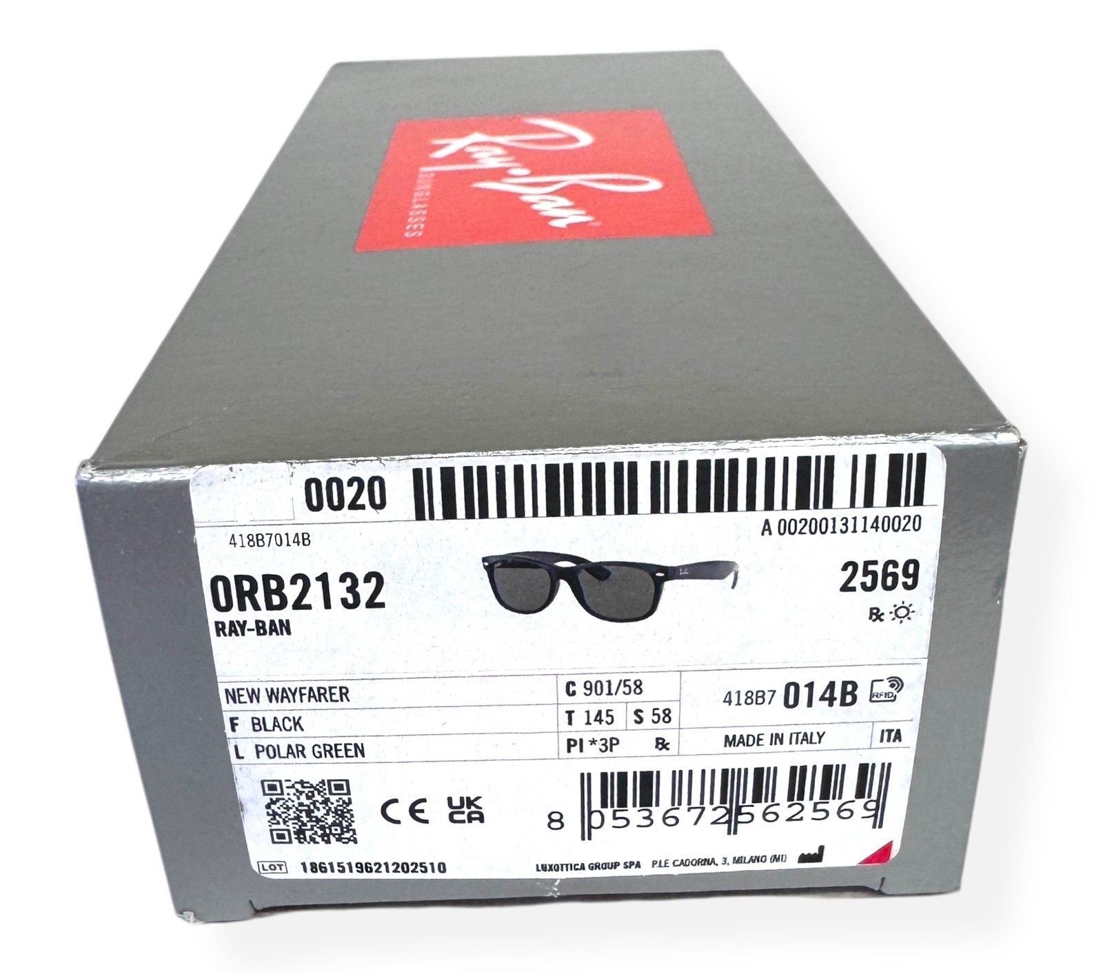 Ray-Ban New Wayfarer Sunglasses RB 2132 901/58 Polished Black Polarized 58mm