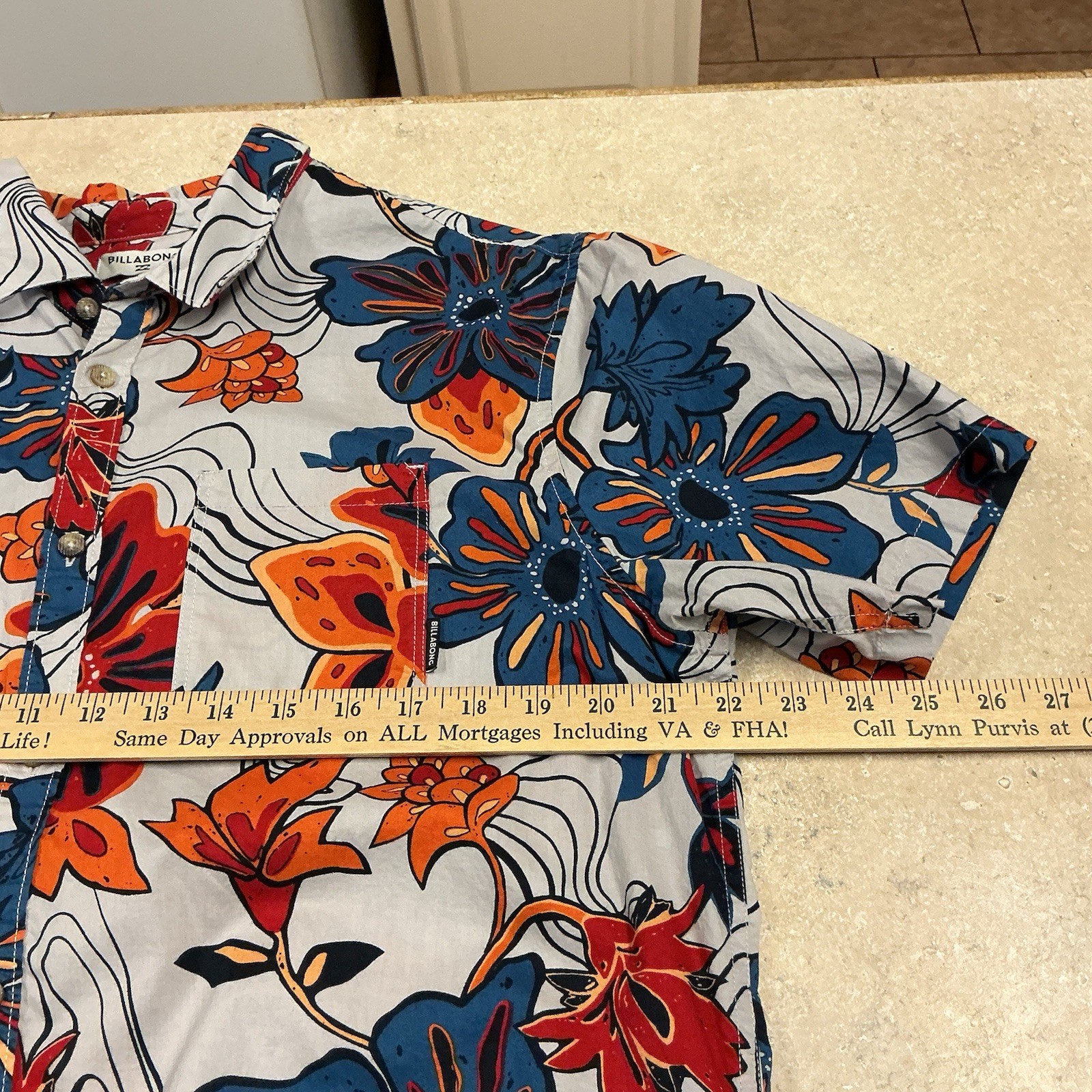 как выглядит Billabong SZ XL Men s Tropical Print Tailored Fit /stretch Button Up Shirt Beach фото