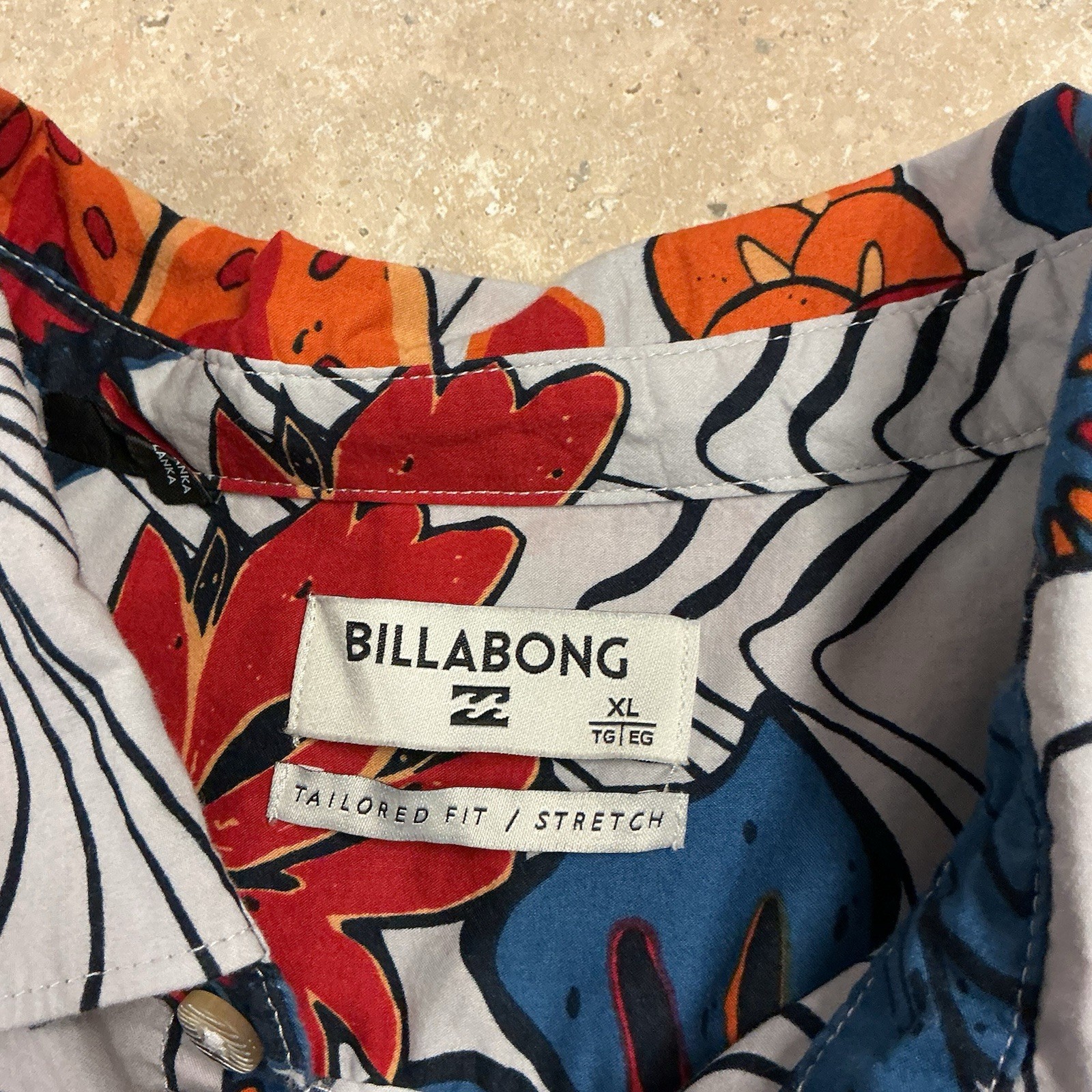 Billabong SZ XL Men s Tropical Print Tailored Fit /stretch Button Up Shirt Beach