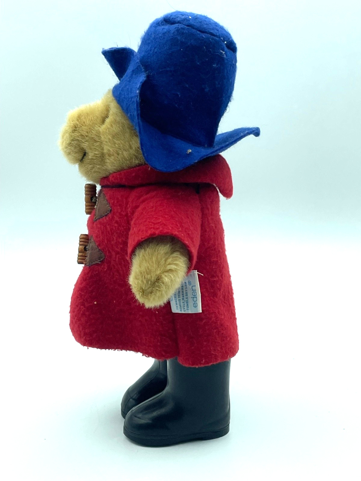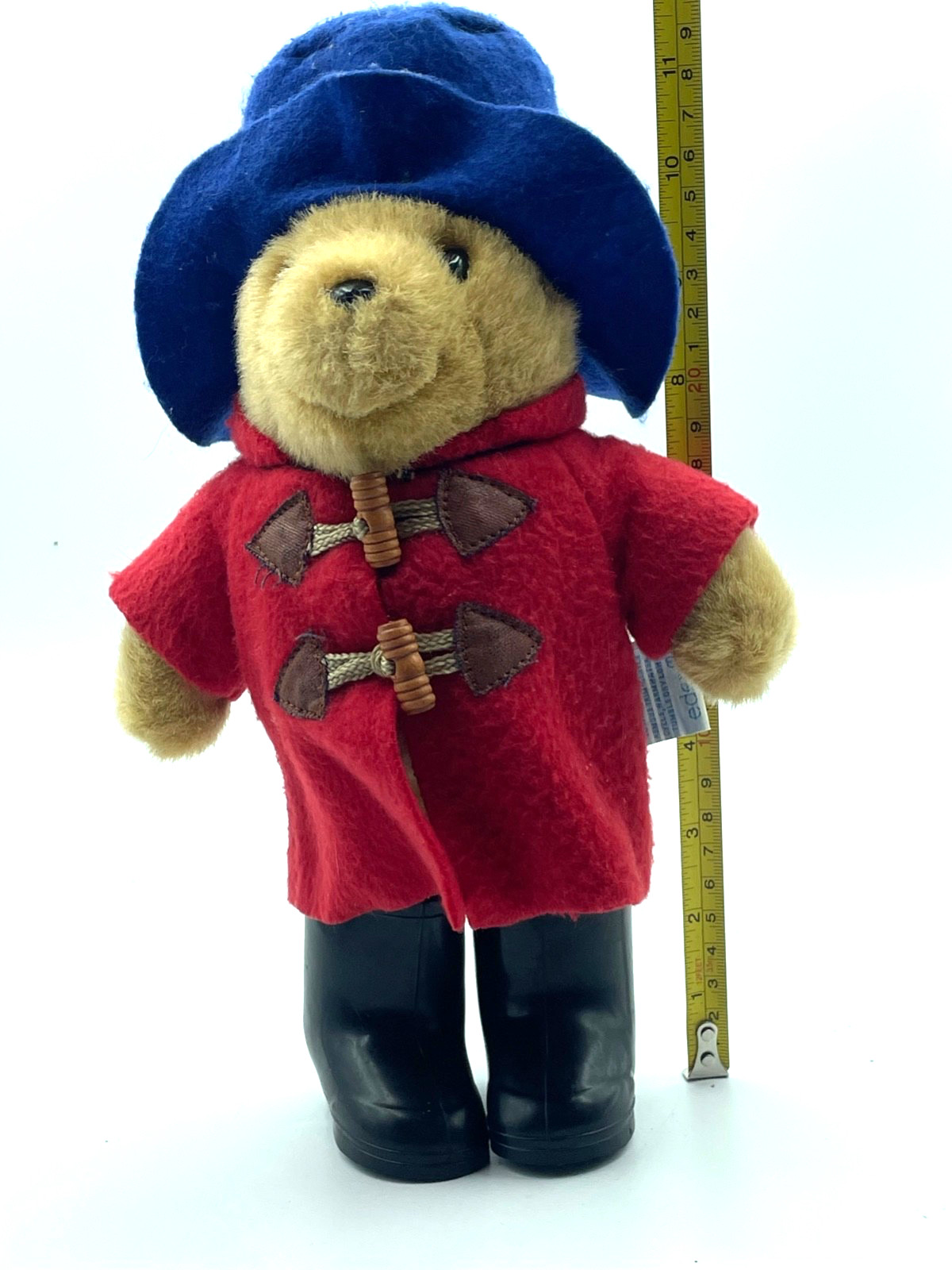 как выглядит Vtg Eden Paddington Bear Plush Toy black Boots Red Coat Blue Hat 12" standing фото