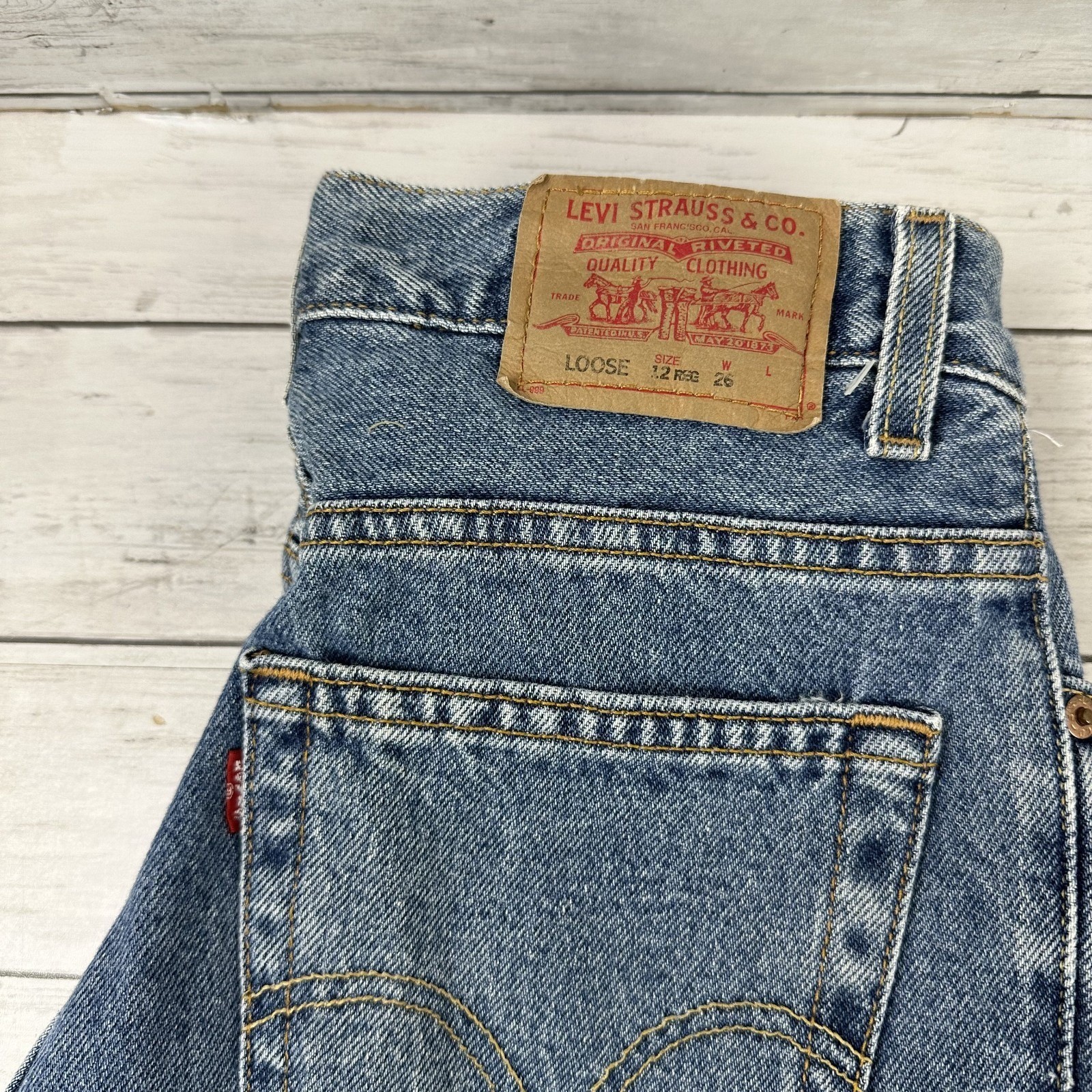как выглядит Vintage Y2K Levis Shorts Boys 12 Baggy Loose Denim Casual Retro Skater 28x10" фото