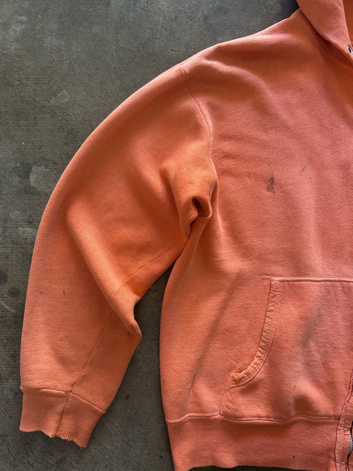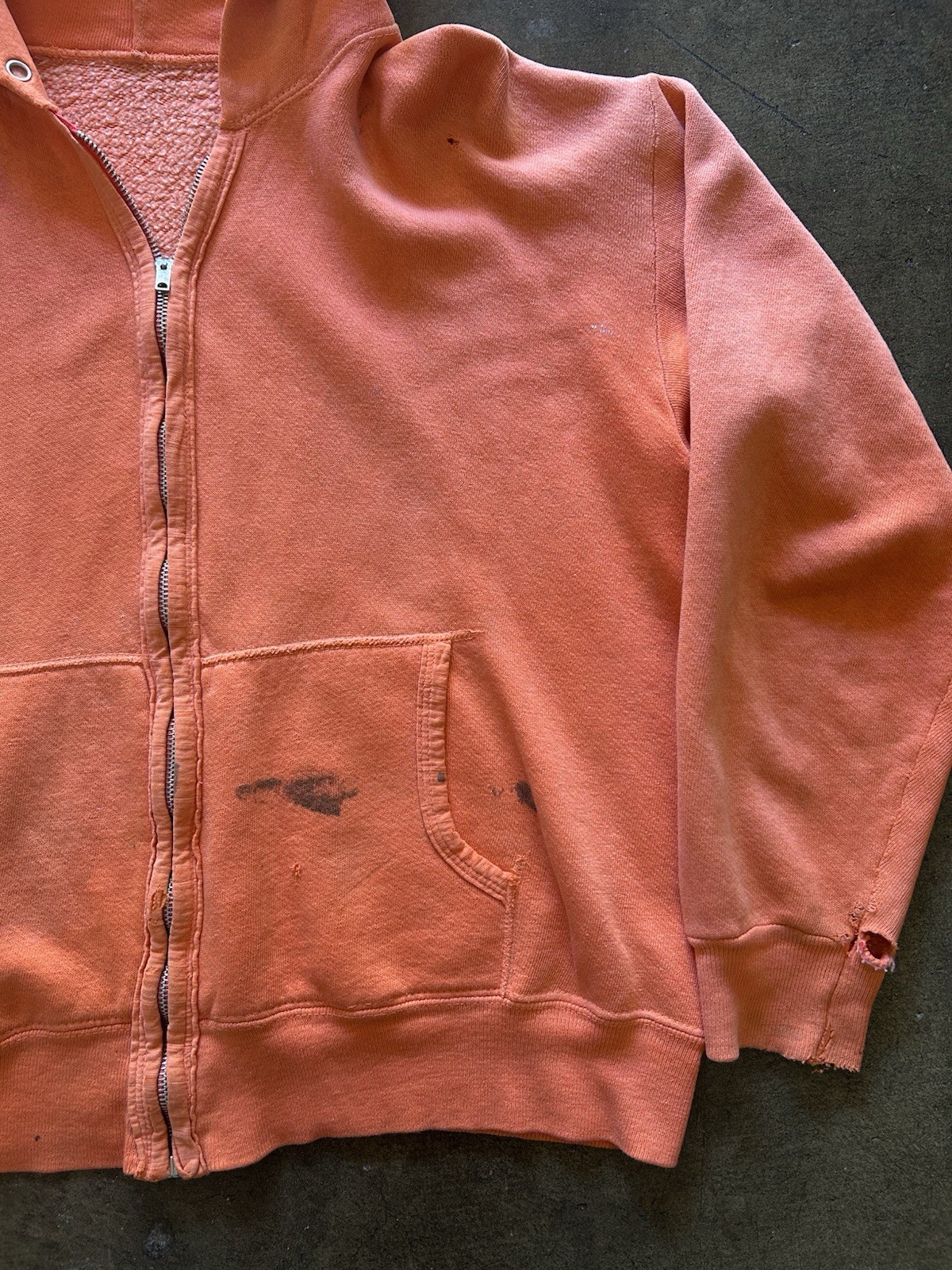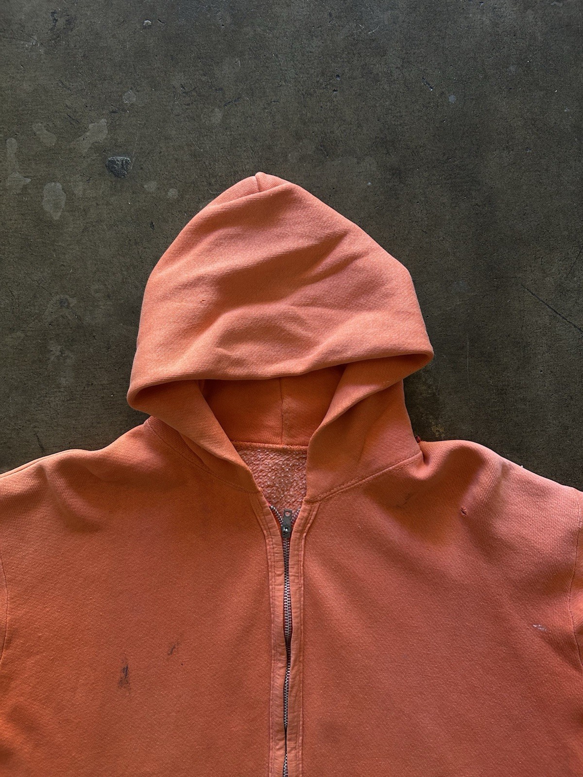 Vintage 1960s Zip Up Hoodie Sweatshirt Orange Faded Distressed True Vintage Rare