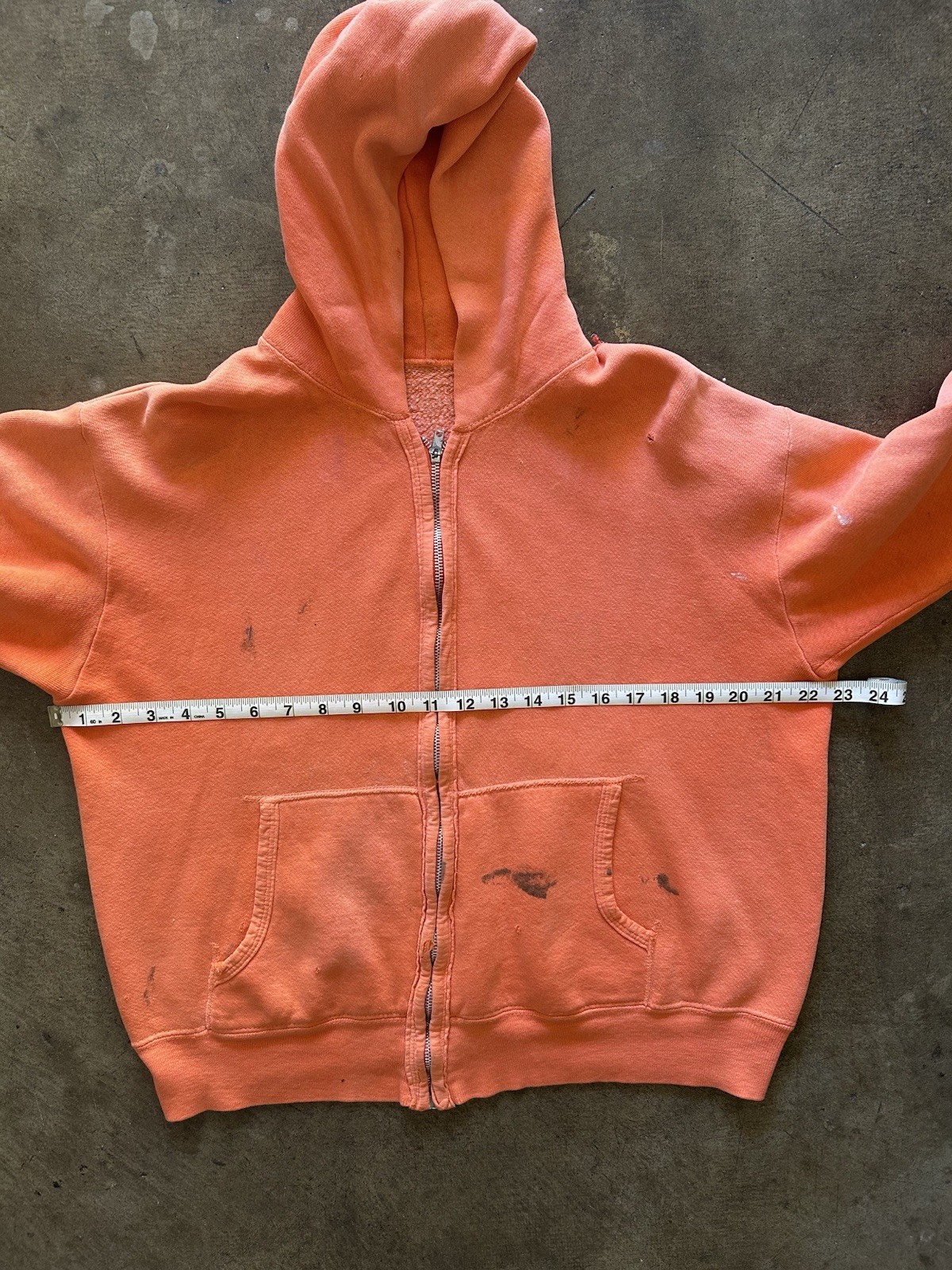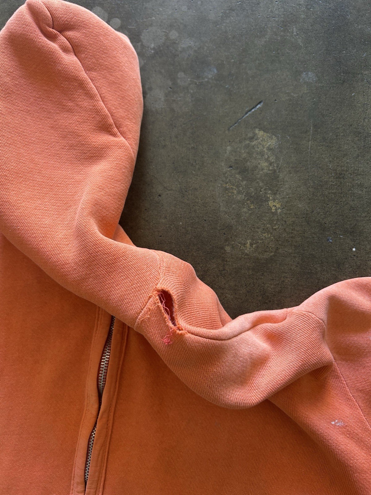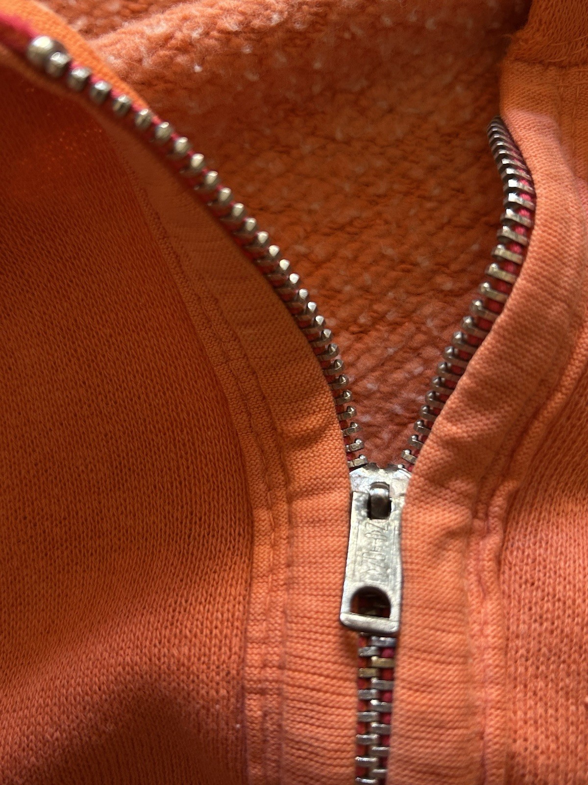 Vintage 1960s Zip Up Hoodie Sweatshirt Orange Faded Distressed True Vintage Rare