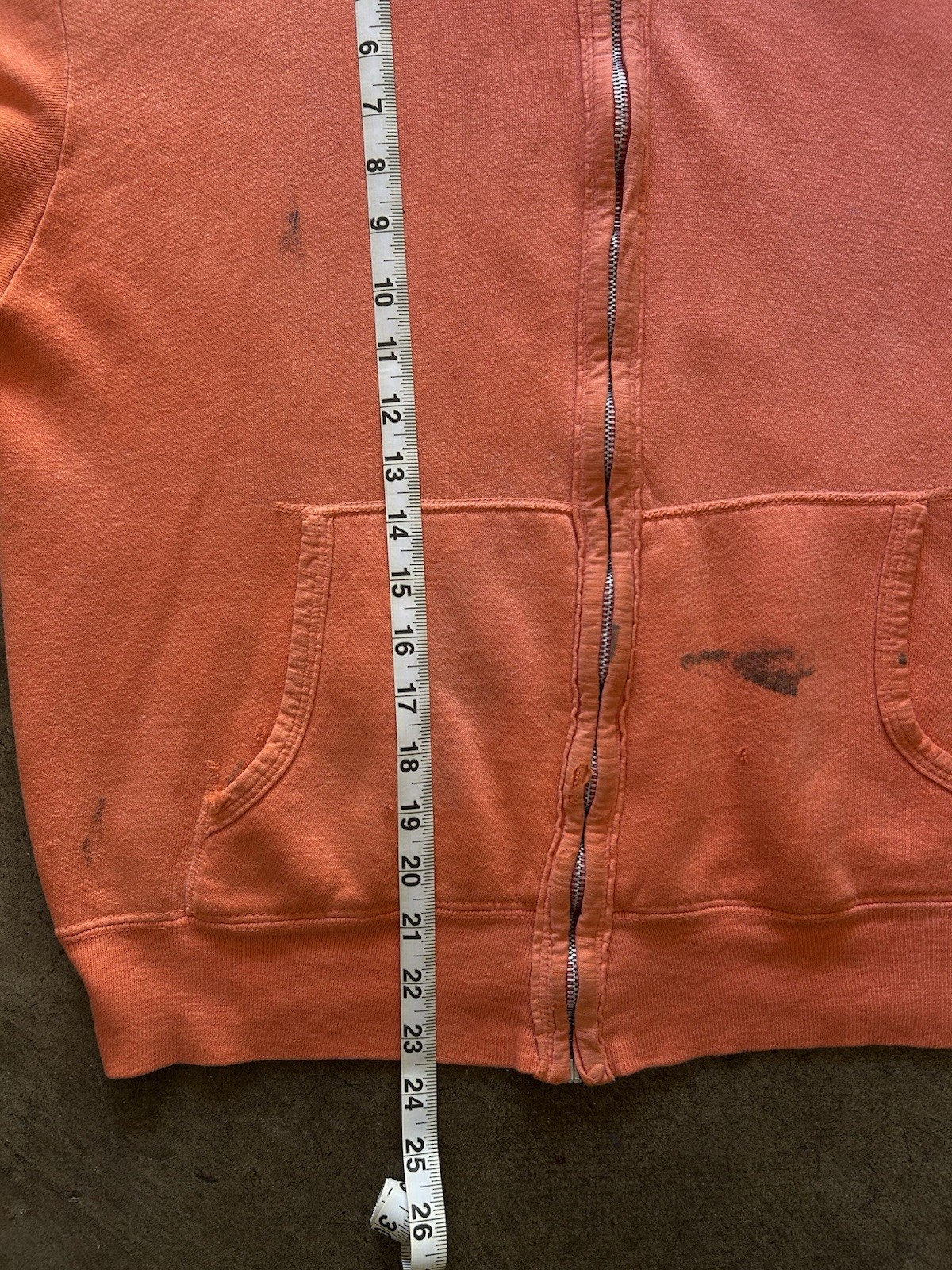 как выглядит Vintage 1960s Zip Up Hoodie Sweatshirt Orange Faded Distressed True Vintage Rare фото