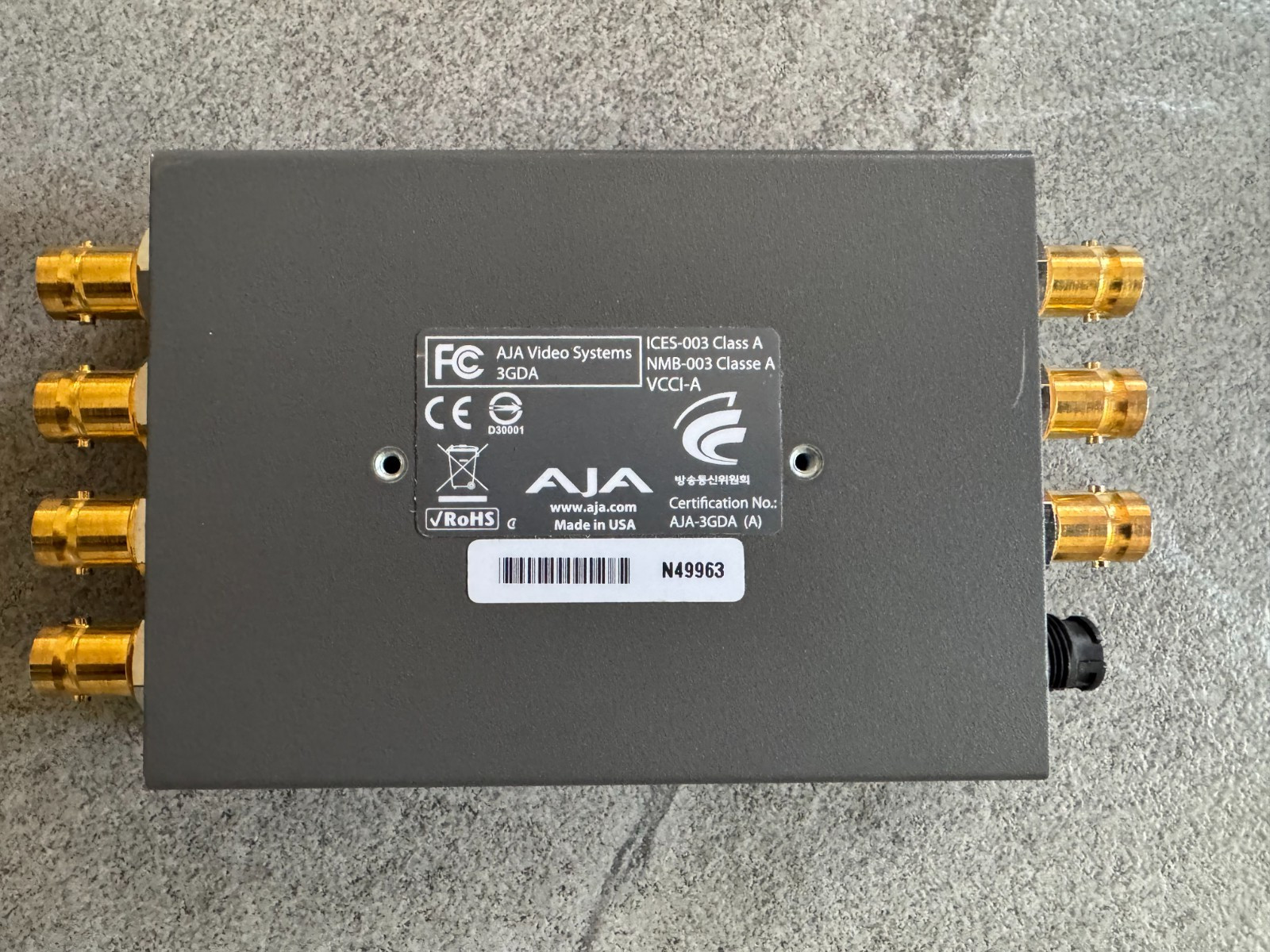 AJA 3GDA 1x6 3G/HD/SD Mini Reclocking Distribution Amplifier 6-Out Power Supply