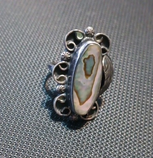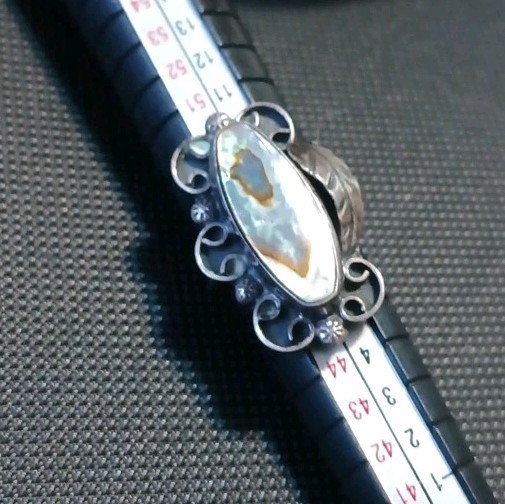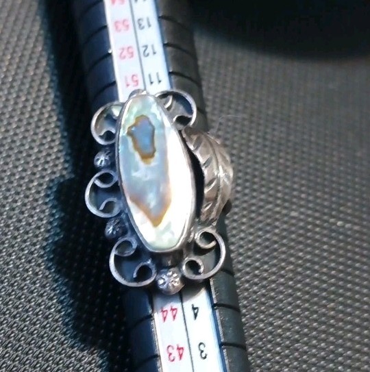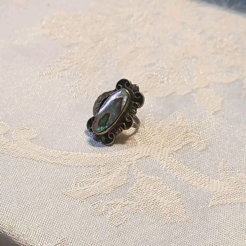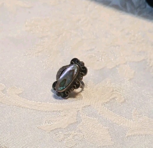 как выглядит Vintage Unique Abalone Sterling Silver 925 Mexico Ring Size 4.25" Signed фото