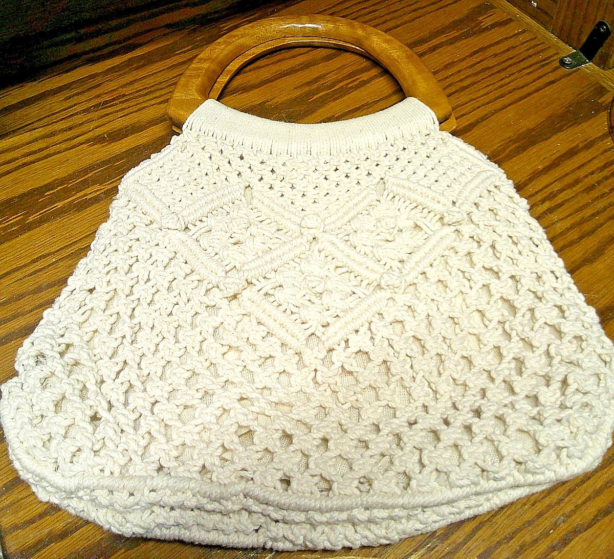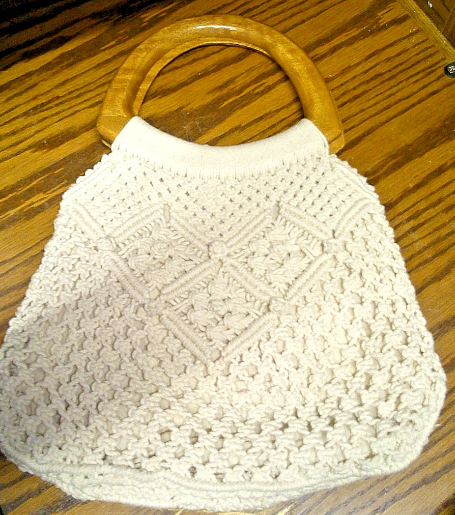 как выглядит Mister Ernest Handbag Purse MCM 10"x12" Double Wooden Handles Knit-Lined 1035 фото