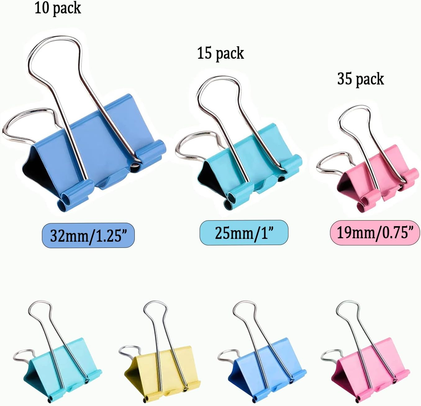 60pcs Colored Binder Clips Paper Clamps Assorted Size Small, Medium, Large Binde