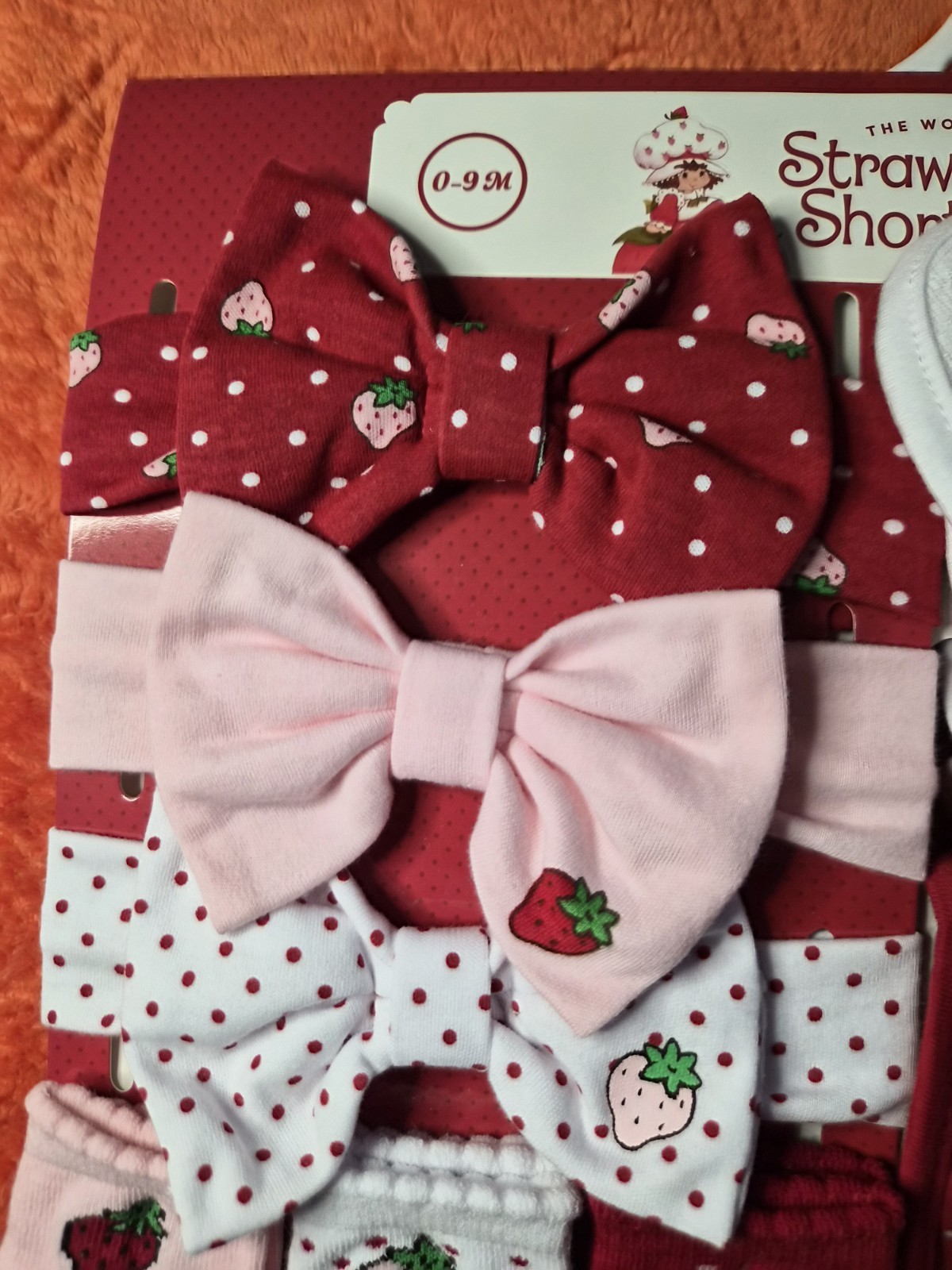 12-Set Strawberry Shortcake Mittens,Bibs,Socks, Headband Bows - New