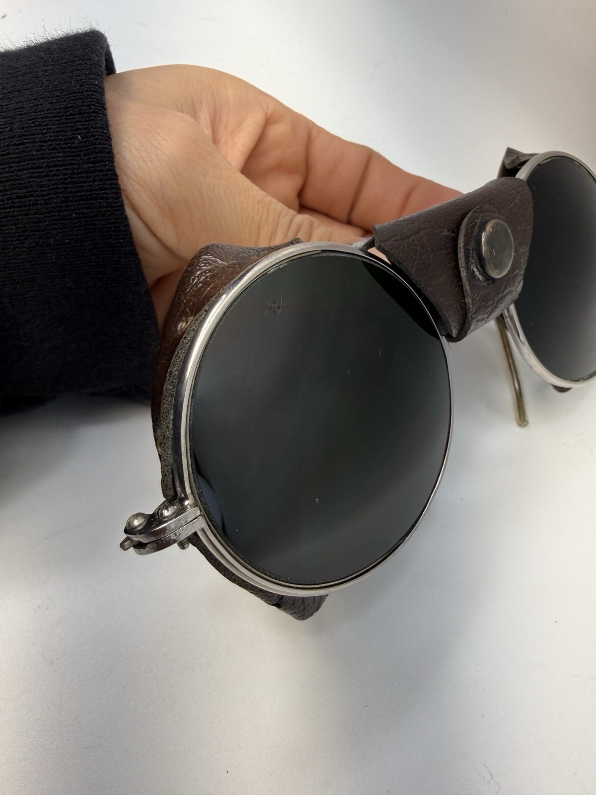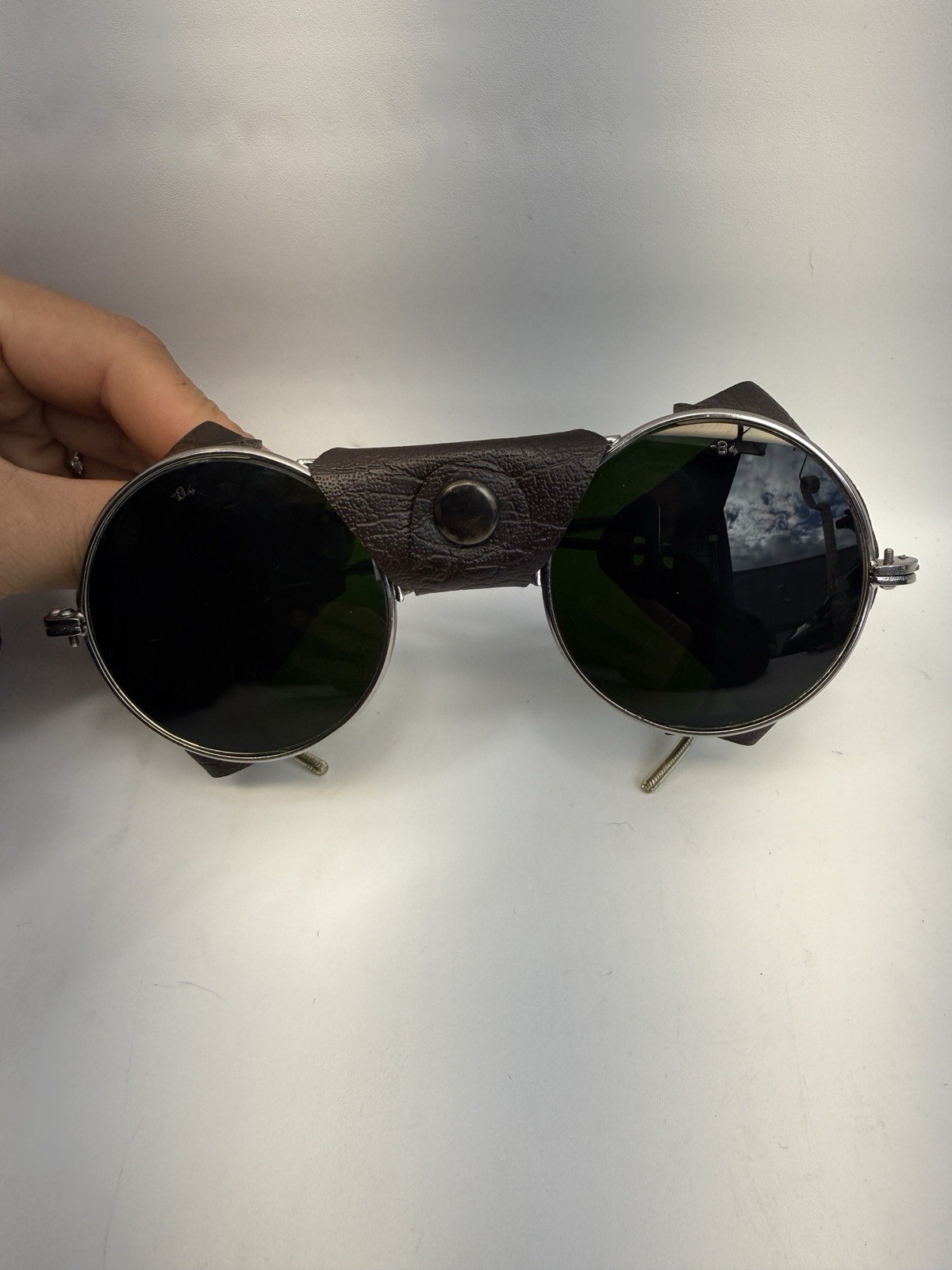 American Optical Glacier Glasses Leather Metal USA Steampunk Aviator Motorcycle