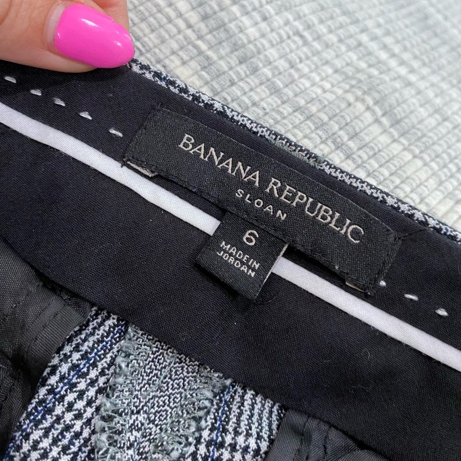 как выглядит Banana Republic Sloan Plaid Ankle Pants Size 6 Black White Stretch Career Chic фото