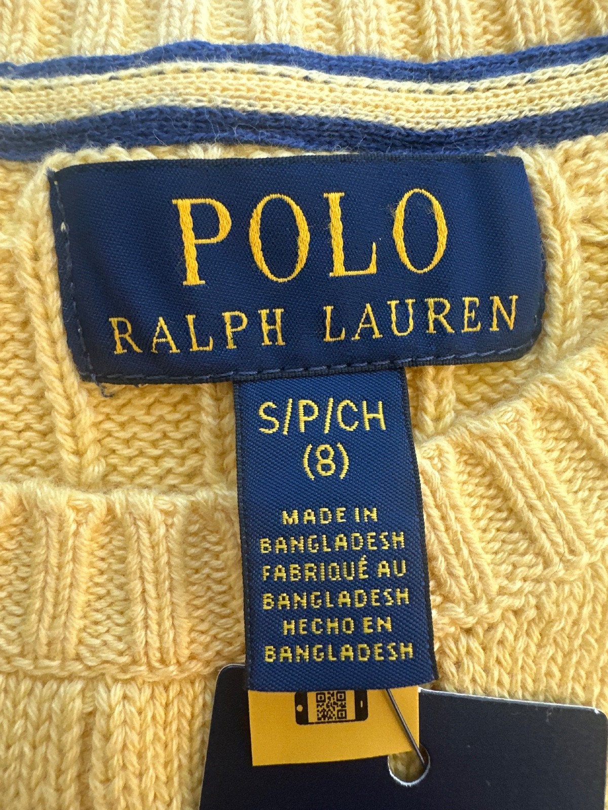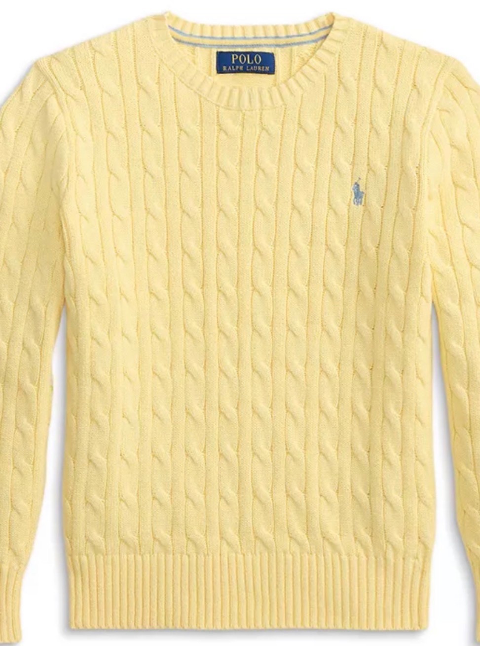 NEW Polo Ralph Lauren KIds ICONIC Cable Knit Cotton Sweater Yellow Blue Pony 8 S