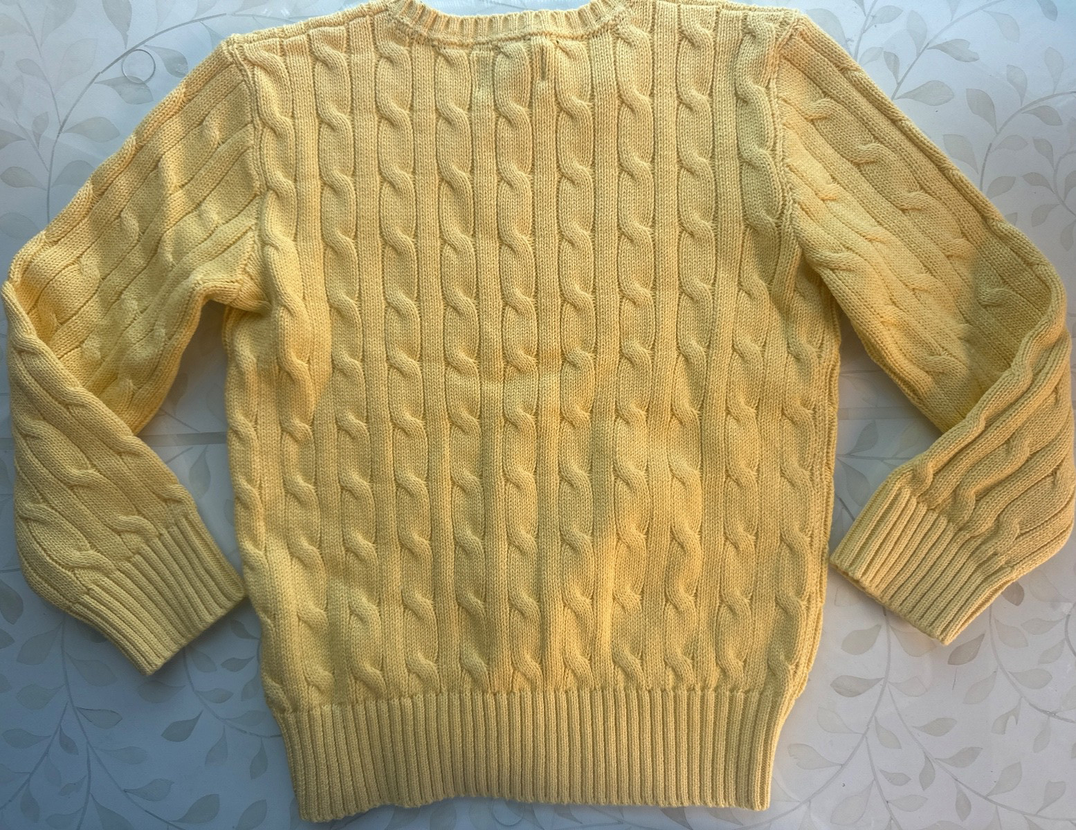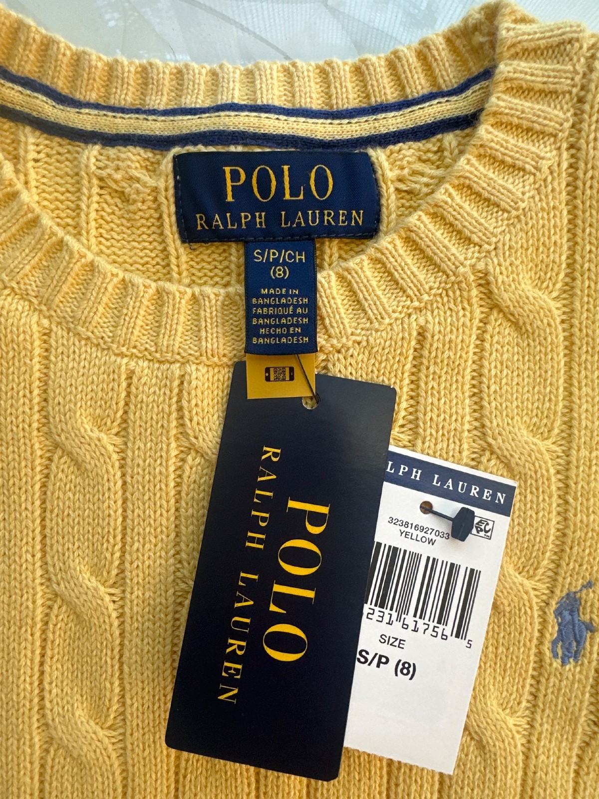 как выглядит NEW Polo Ralph Lauren KIds ICONIC Cable Knit Cotton Sweater Yellow Blue Pony 8 S фото