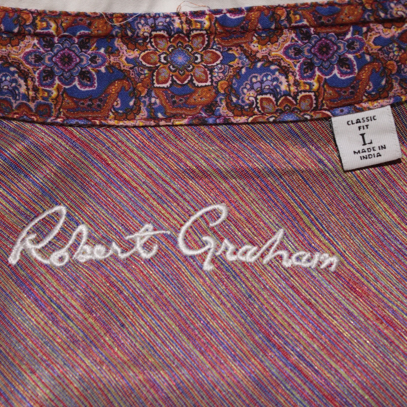 как выглядит Robert Graham NWT Bevande Casual Button Down Shirt Size L Classic Fit in White фото