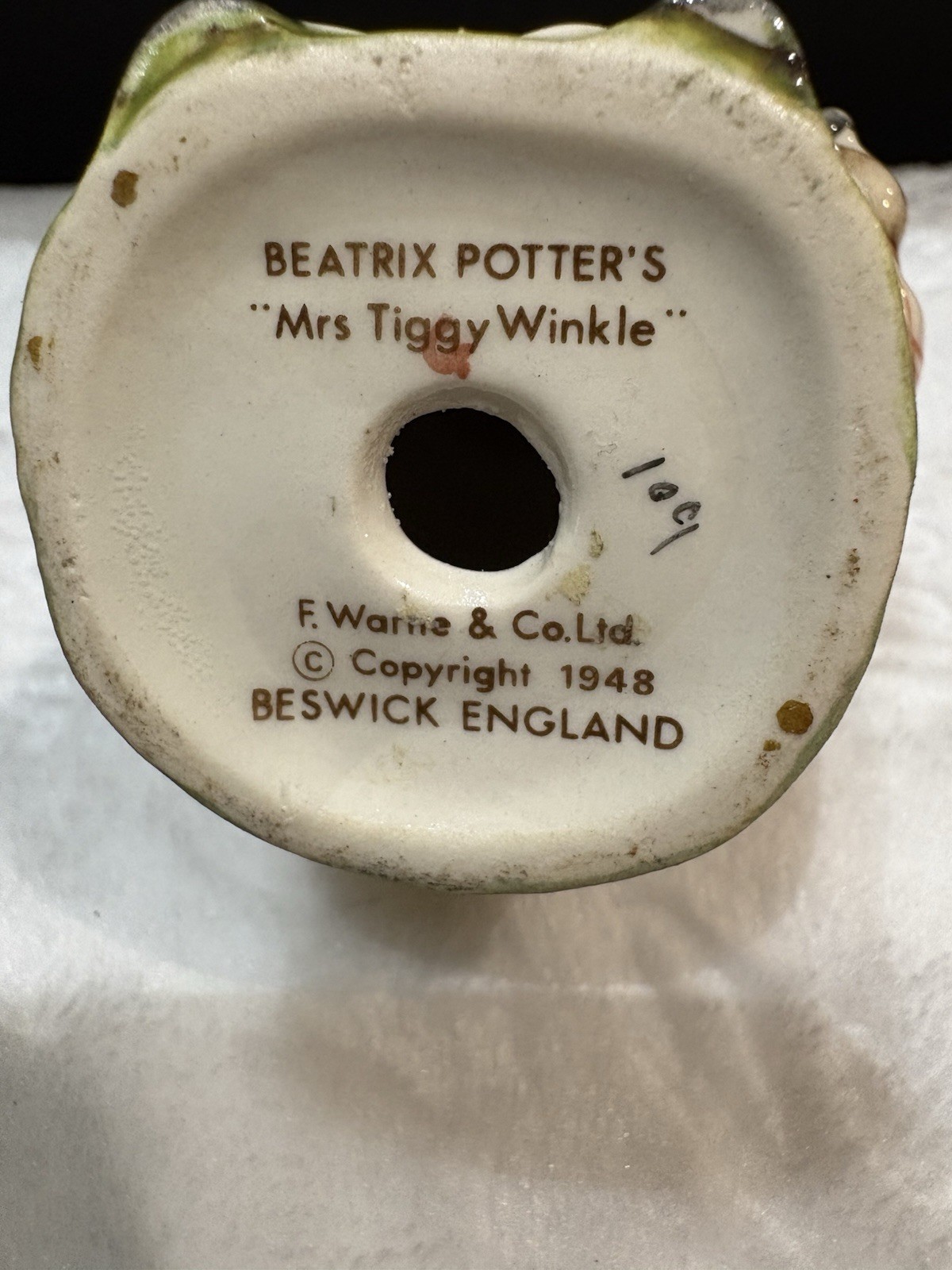 • BESWICK F. WARNE CO. BEATRIX POTTER S MRS TIGGY WINKLE 1948 IRON BONNET