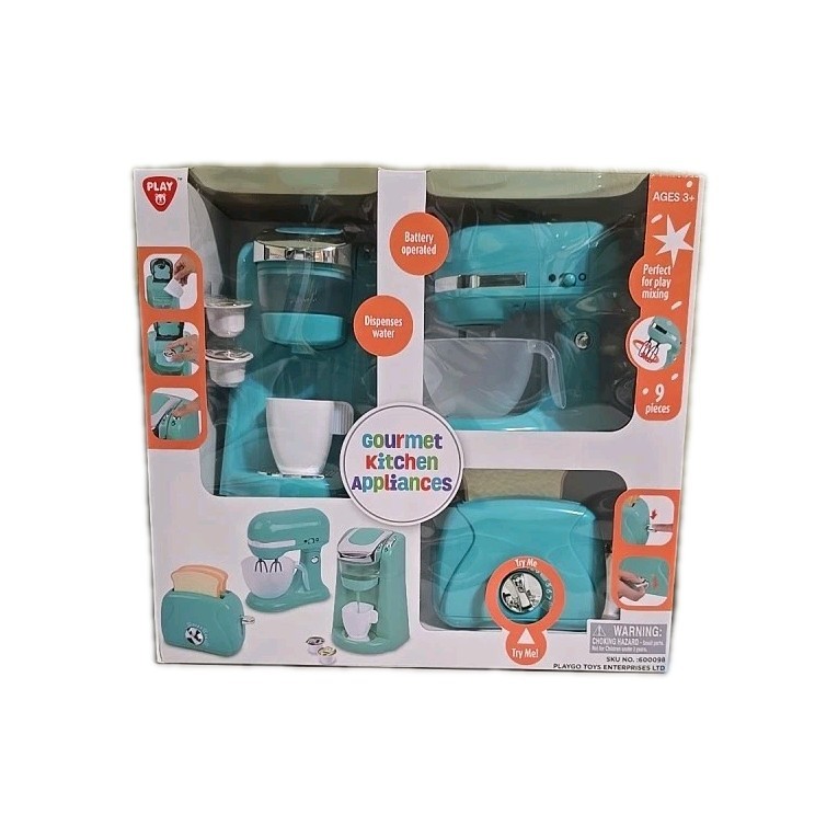 Play My First Kitchen Appliance Trio Playset-Coffee Mixer Toaster Gift Age 3