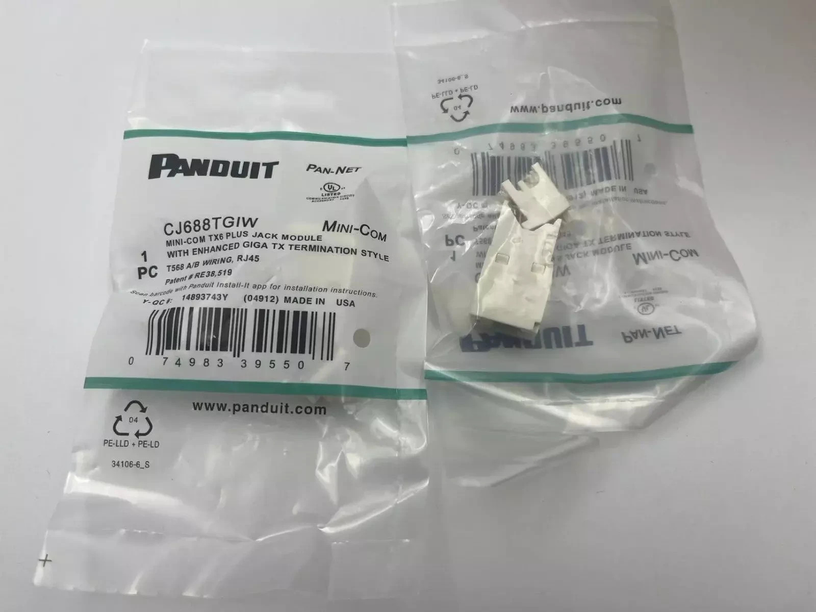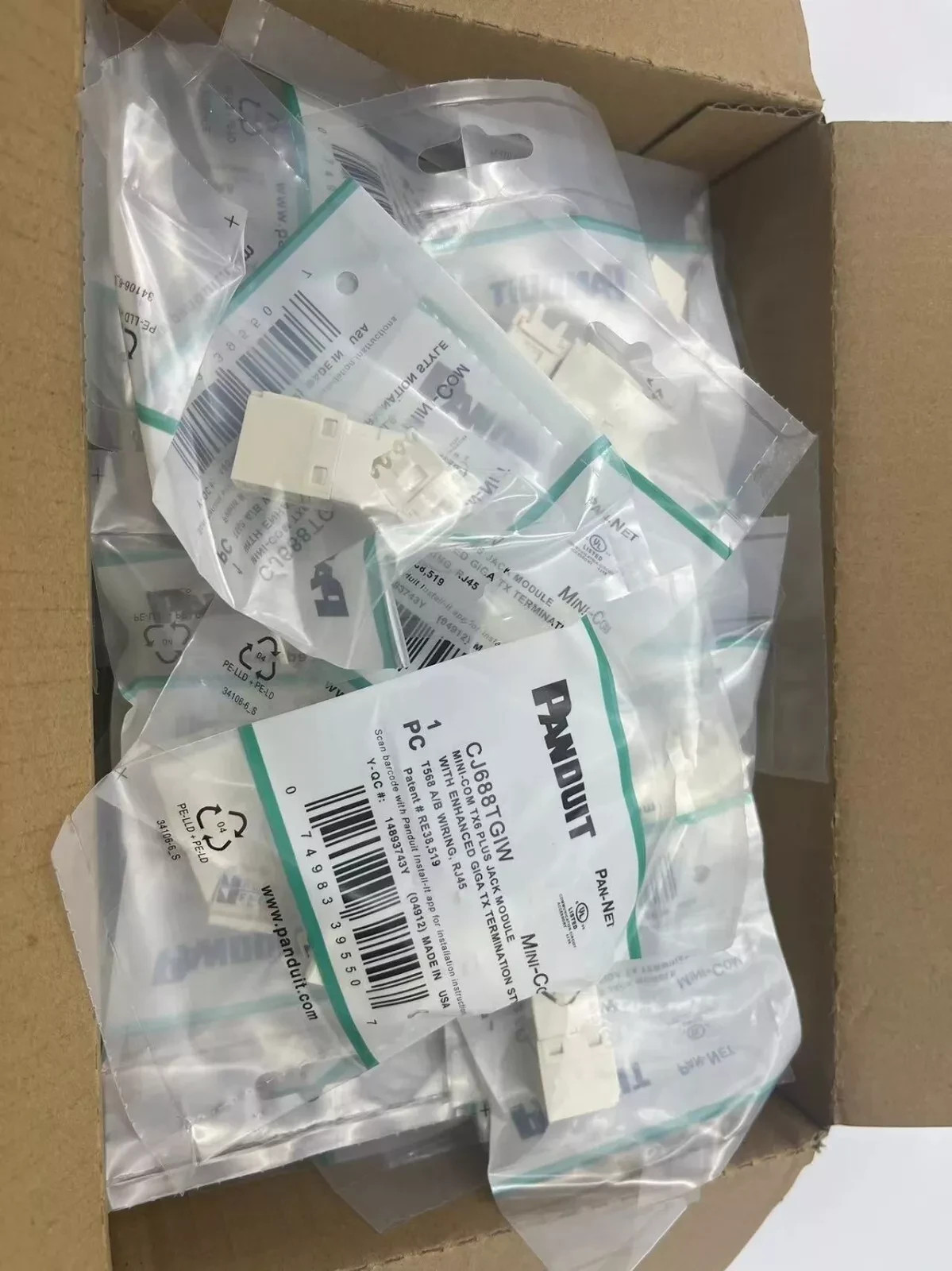 Panduit Giga TX Cat6 jack white CJ688TGIW BOX OF 50. Free shipping