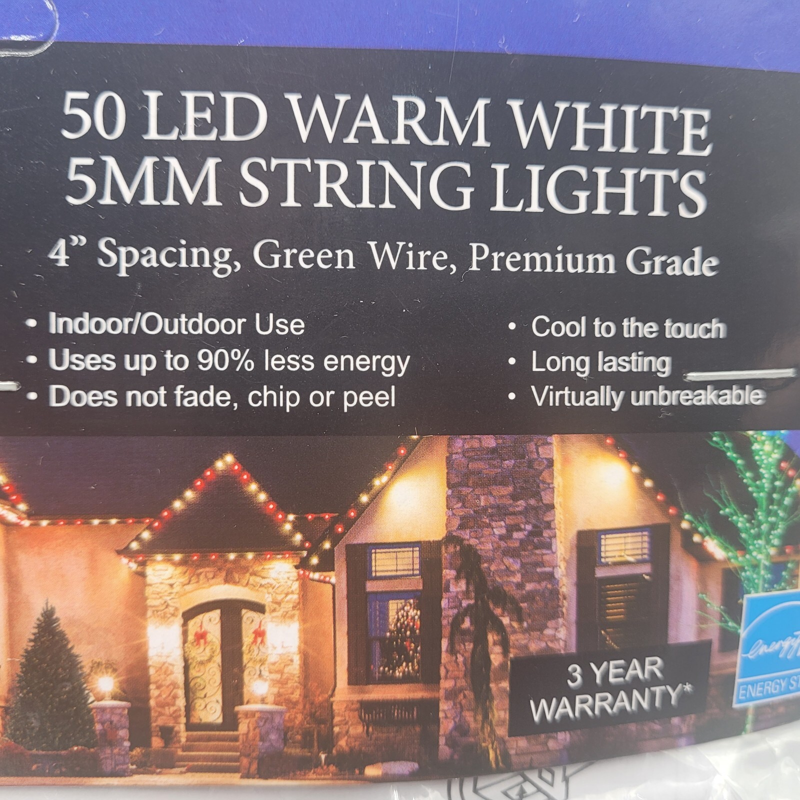 50 LED Warm White Indoor/Outdoor Light Set - 17 ft Wintergreen Lighting NEW