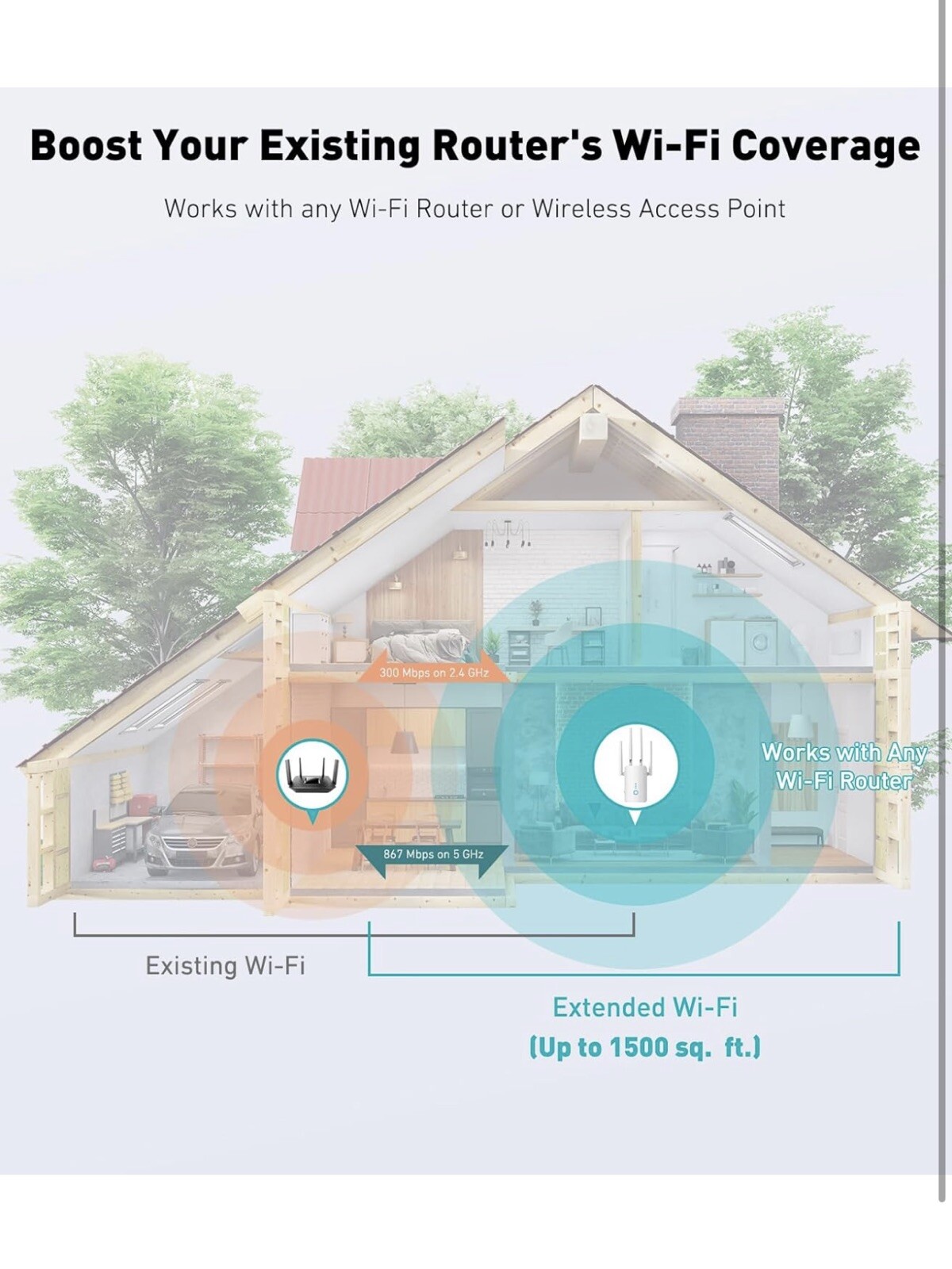 WiFi Extender 1.2Gbps Signal Booster for Home Dual Band 5GHz 2.4GHz,