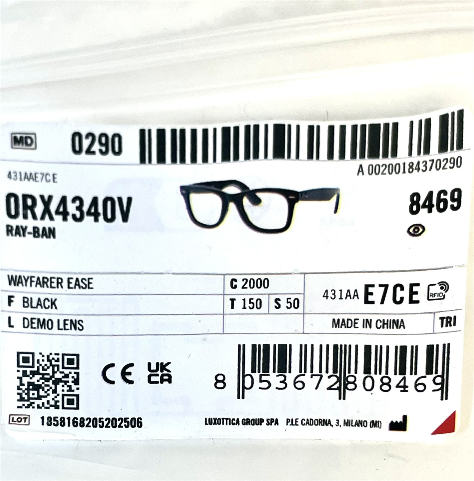 Ray-Ban Wayfarer Ease Eyeglasses Glasses RB 4340V 2000 Shiny Black 50mm w/case