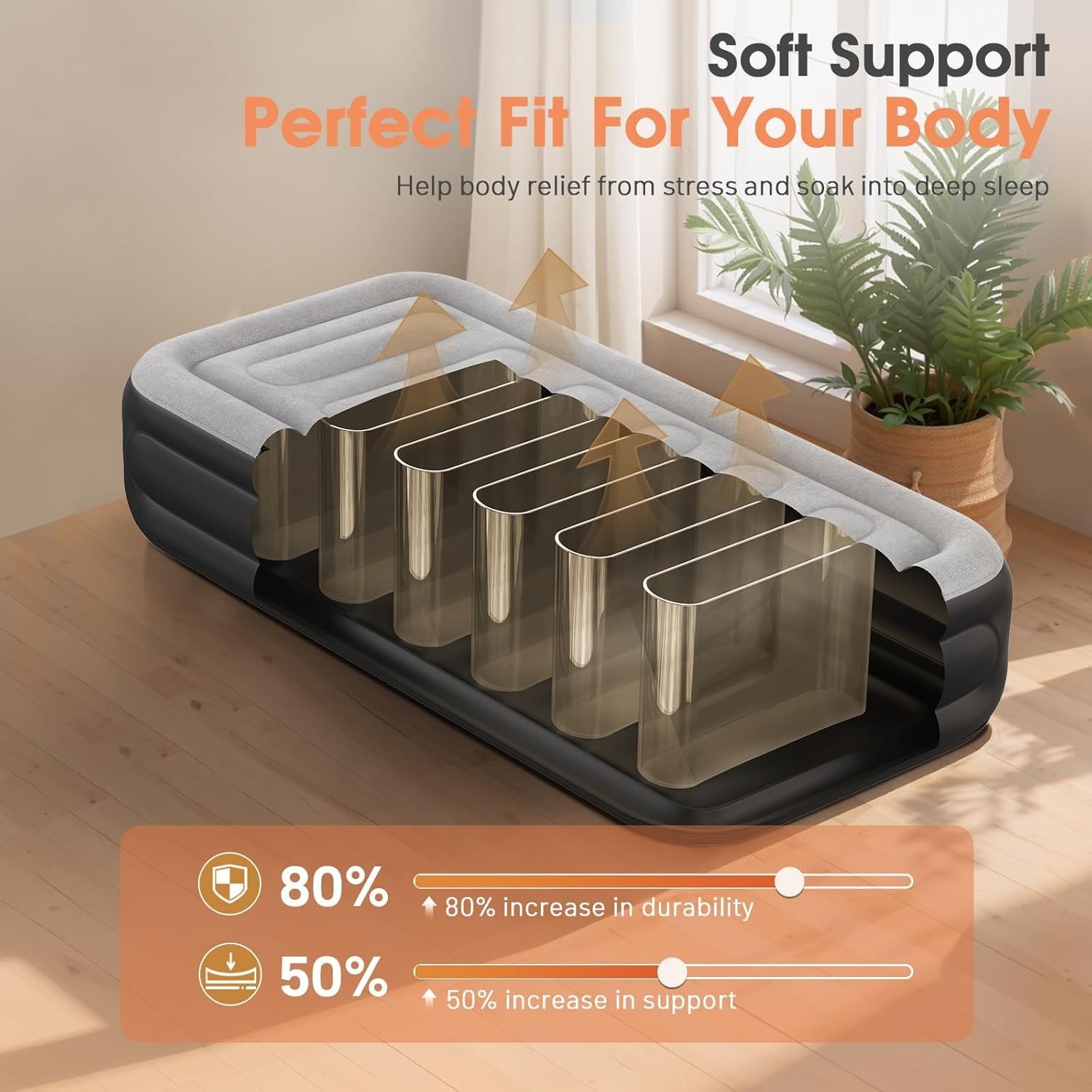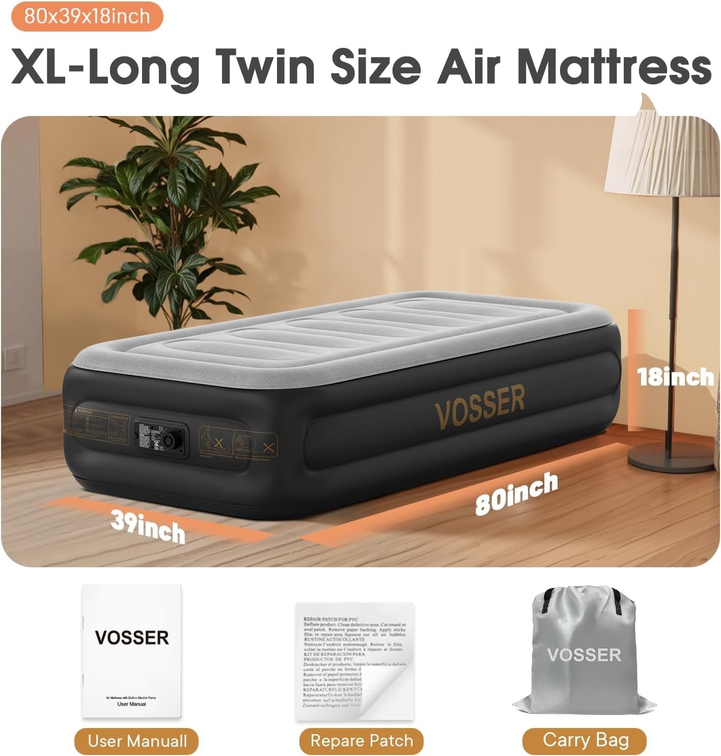 VOSSER Twin Air Mattress with Built in Pump,18''Inflatable Mattress 2 Mins Self