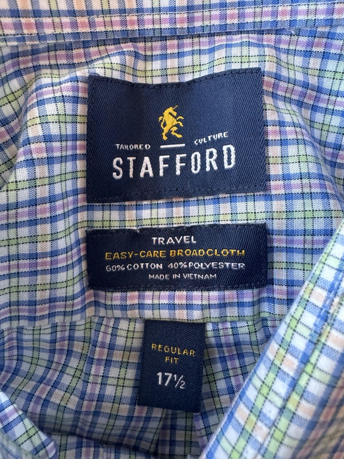 Stafford Men's Short Sleeve Dress Shirt Plaid White Travel Broadcloth Easy Care