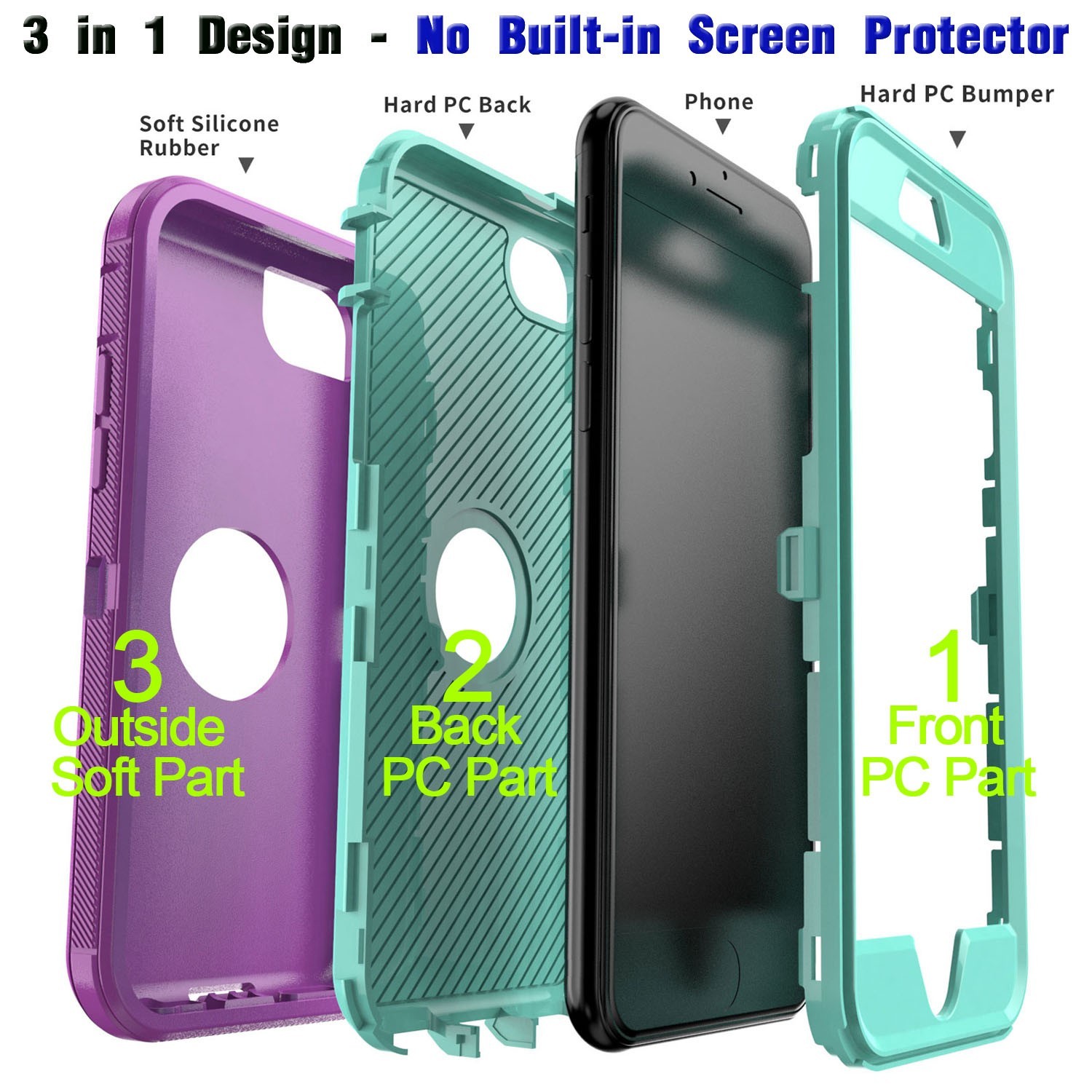For iPhone 7/7 Plus Case Heavy Duty Shockproof Hybrid Phone Cover/Tempered Glass