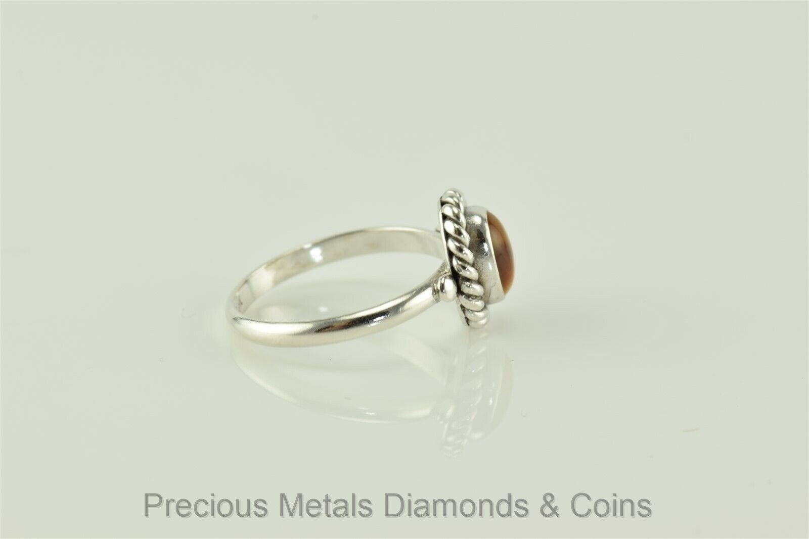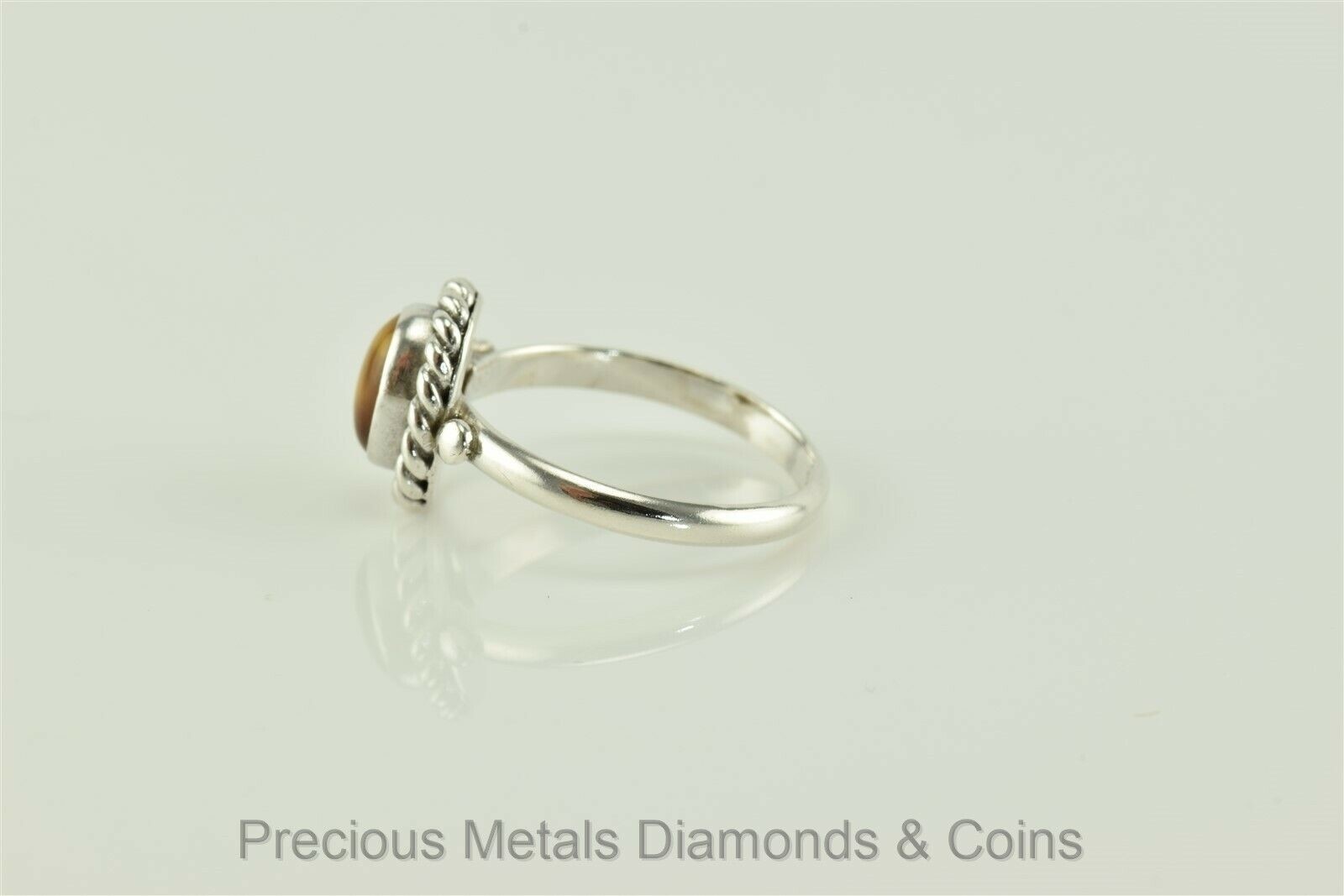 Sterling Silver Polished Oval Brown Tiger's Eye Rope Bezel Ring 925 Sz: 6.5
