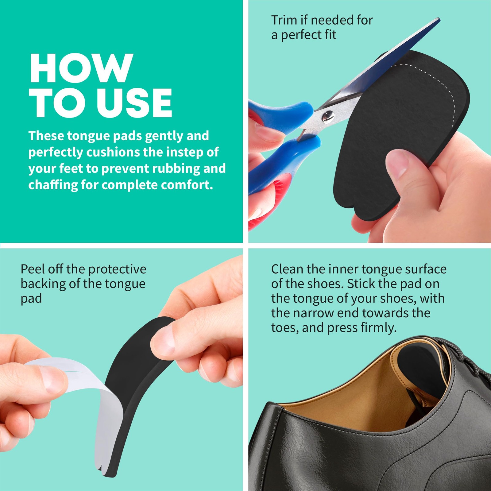 Felt Tongue Pads for Shoes - Soft Self-Adhesive Shoe Inserts Black, 3 Pairs