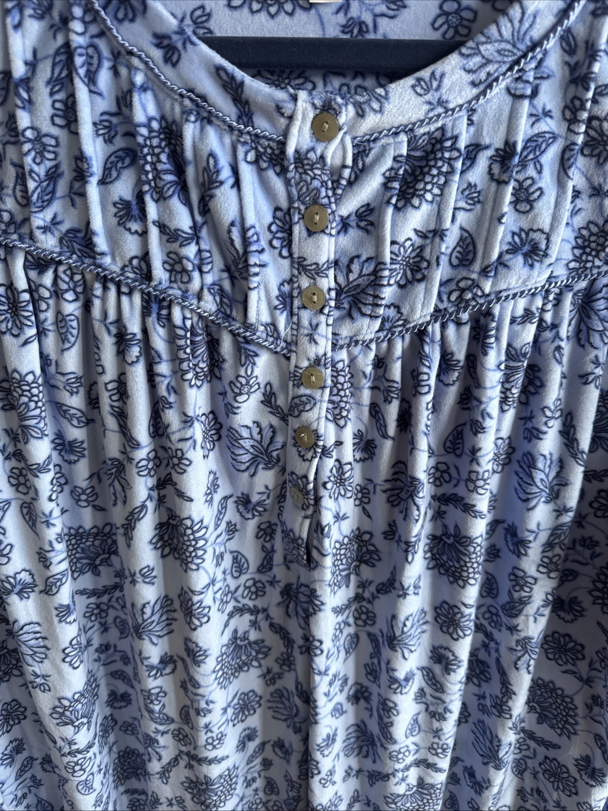 Aria Collection Nightgown Women Floral Velour Cozy Henley Sleepwear Size XL Blue