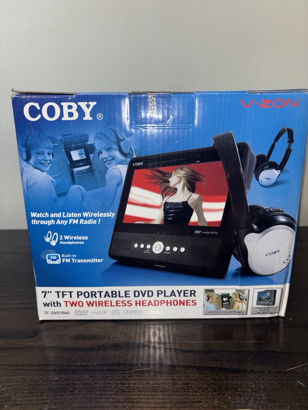 Coby TF-DVD7060 7 TFT Portable DVD Player W/2 Headphones NIB Open-READ FM Trans