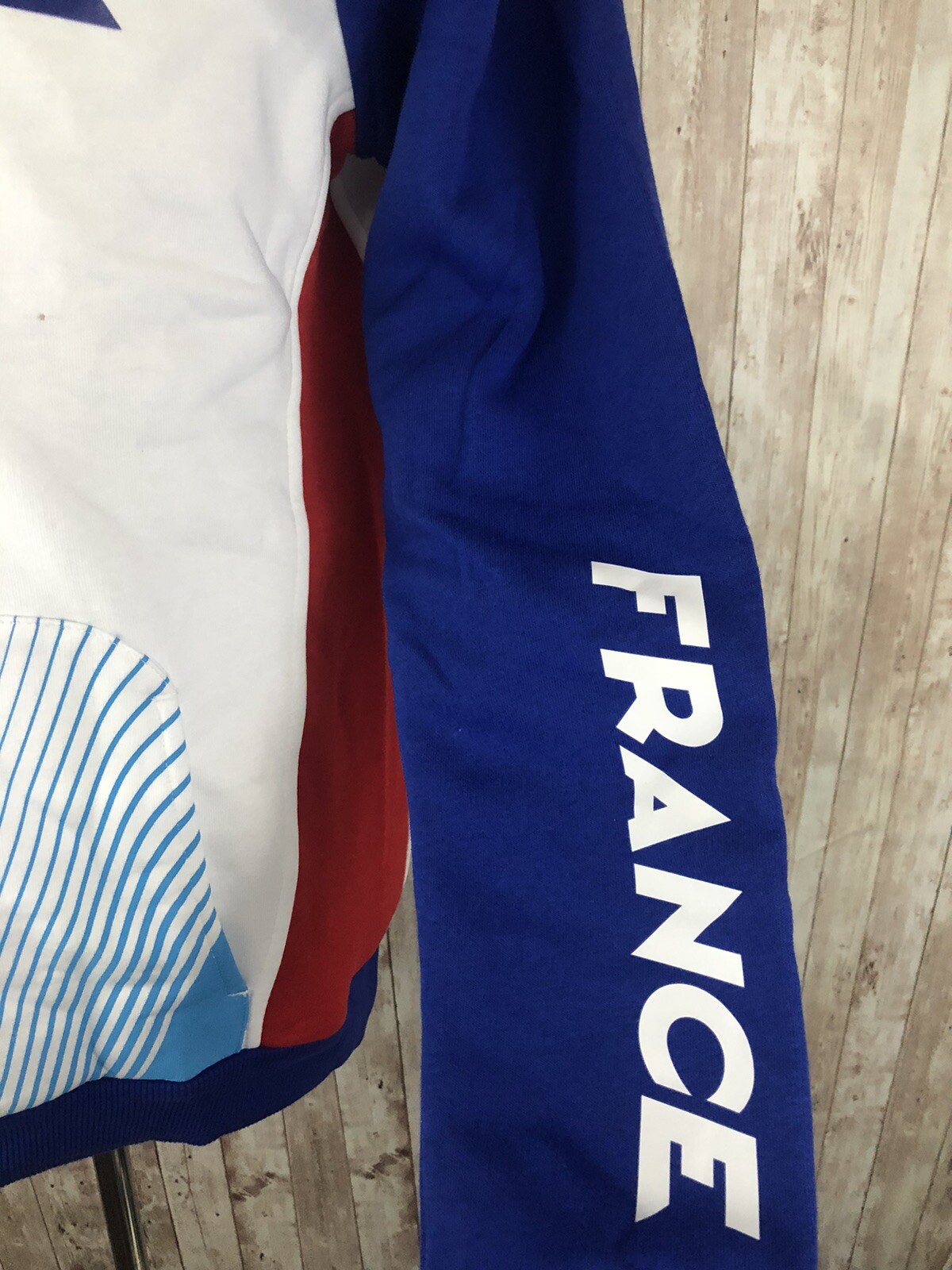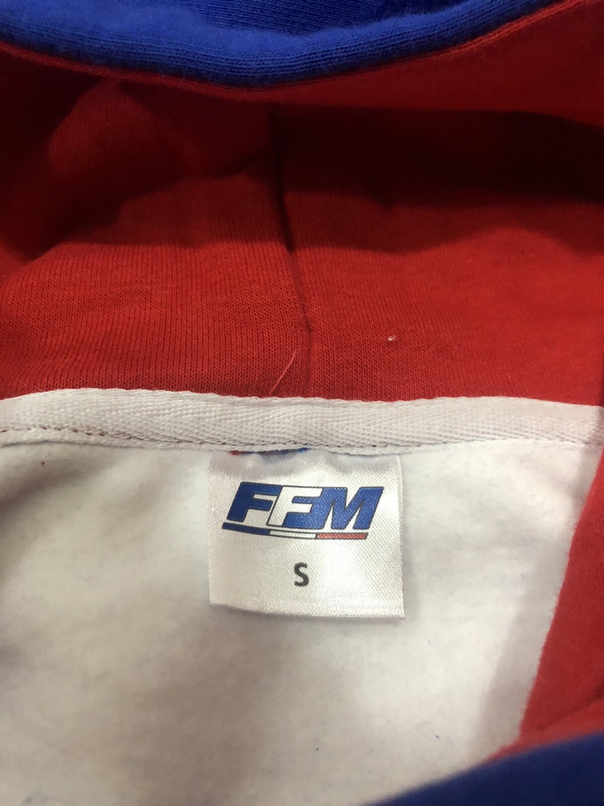 как выглядит France Motor Cycle Hoodie Mens Small Blue Sweatshirt Color Block Pullover N118 фото