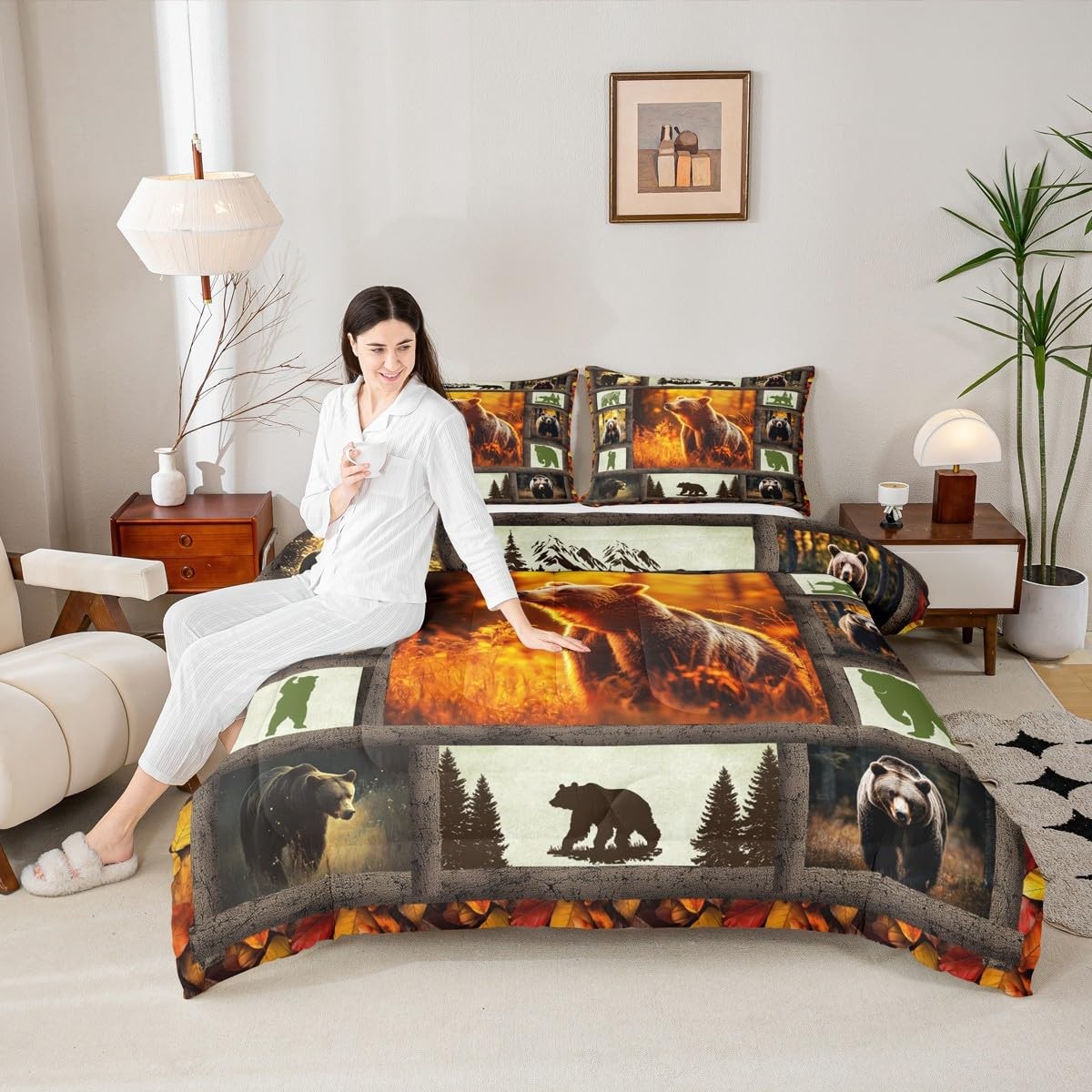 Bear Kids Comforter Set Queen Size Hunting Gifts Bedding Set Nature Wildlife ...