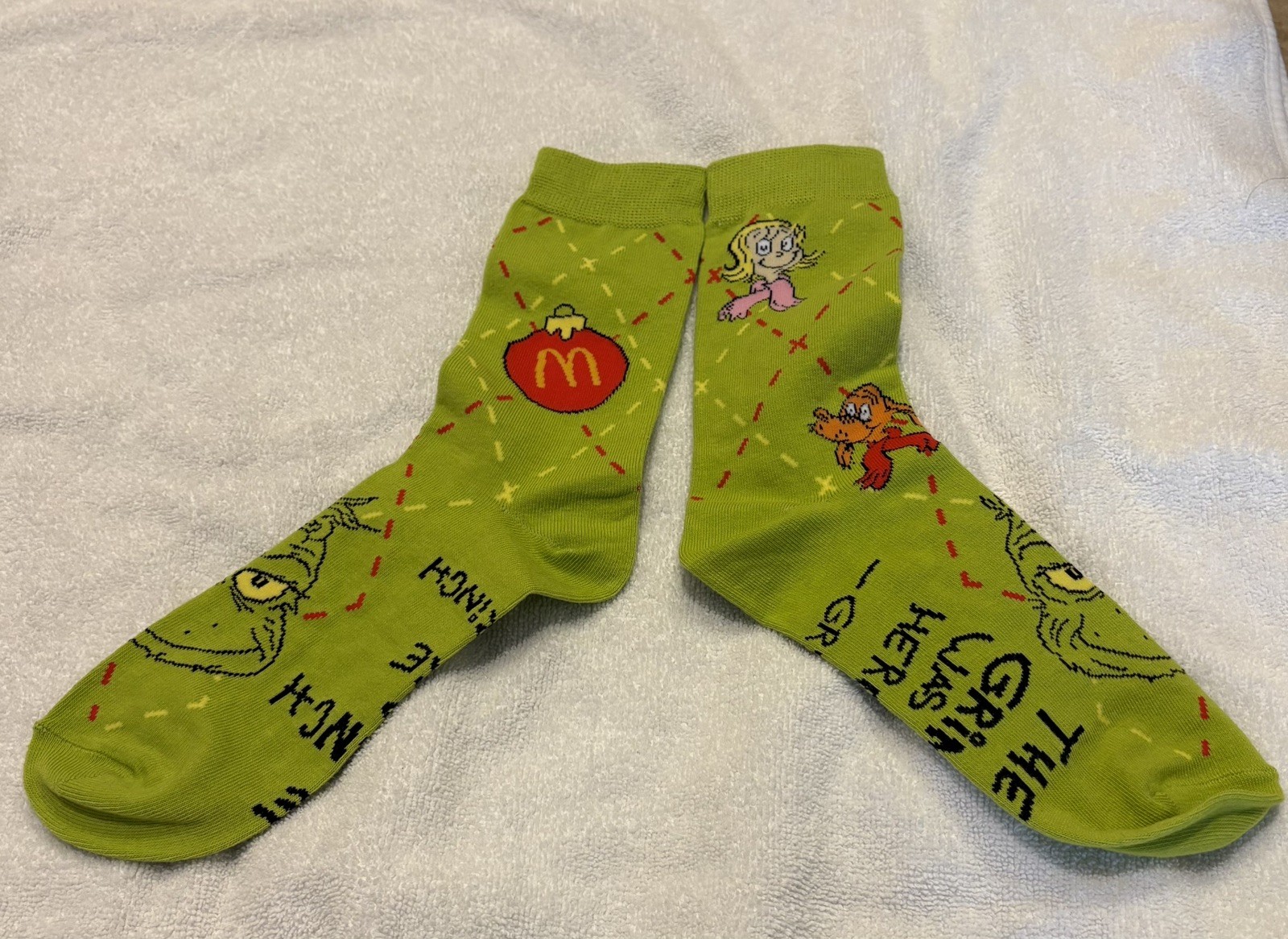 2025 McDonald's Grinch Socks Xmas Adult Happy Meal - Green Socks, Opened package