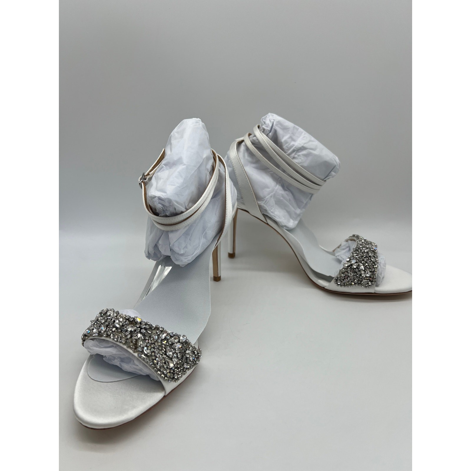 Badgley Mischka Women's Jen Ankle Strap Sandal White Satin MP5317 Size 10 NIB