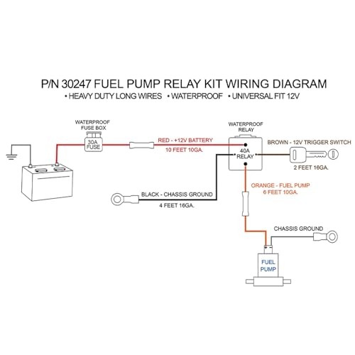 Electric Fuel Pump Relay Wiring Harness Kit Universal Fit 12V System P/N 30247