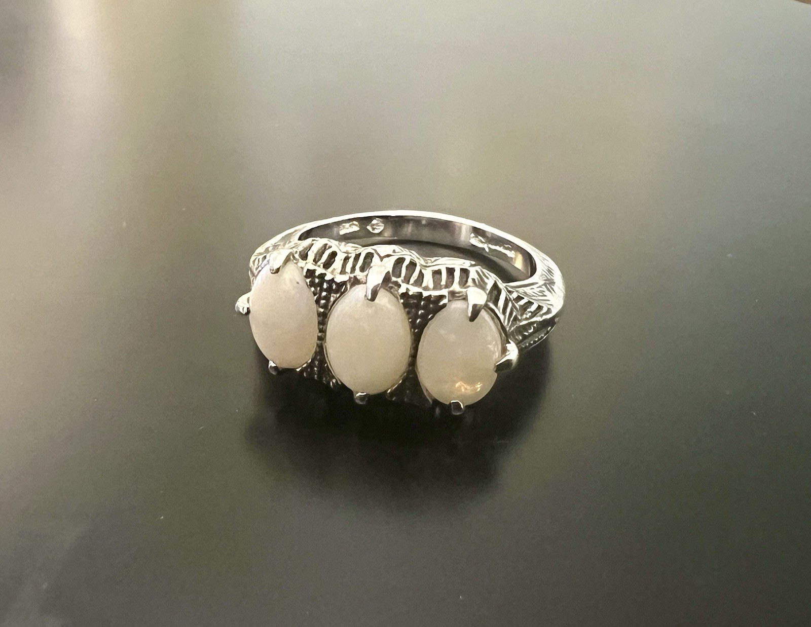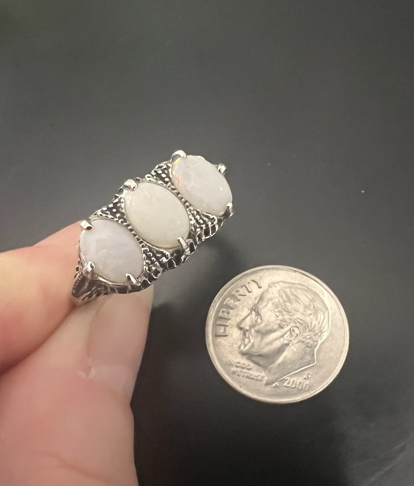 как выглядит Australian White Opal Ring 3 Stones Sterling Silver size 7 фото