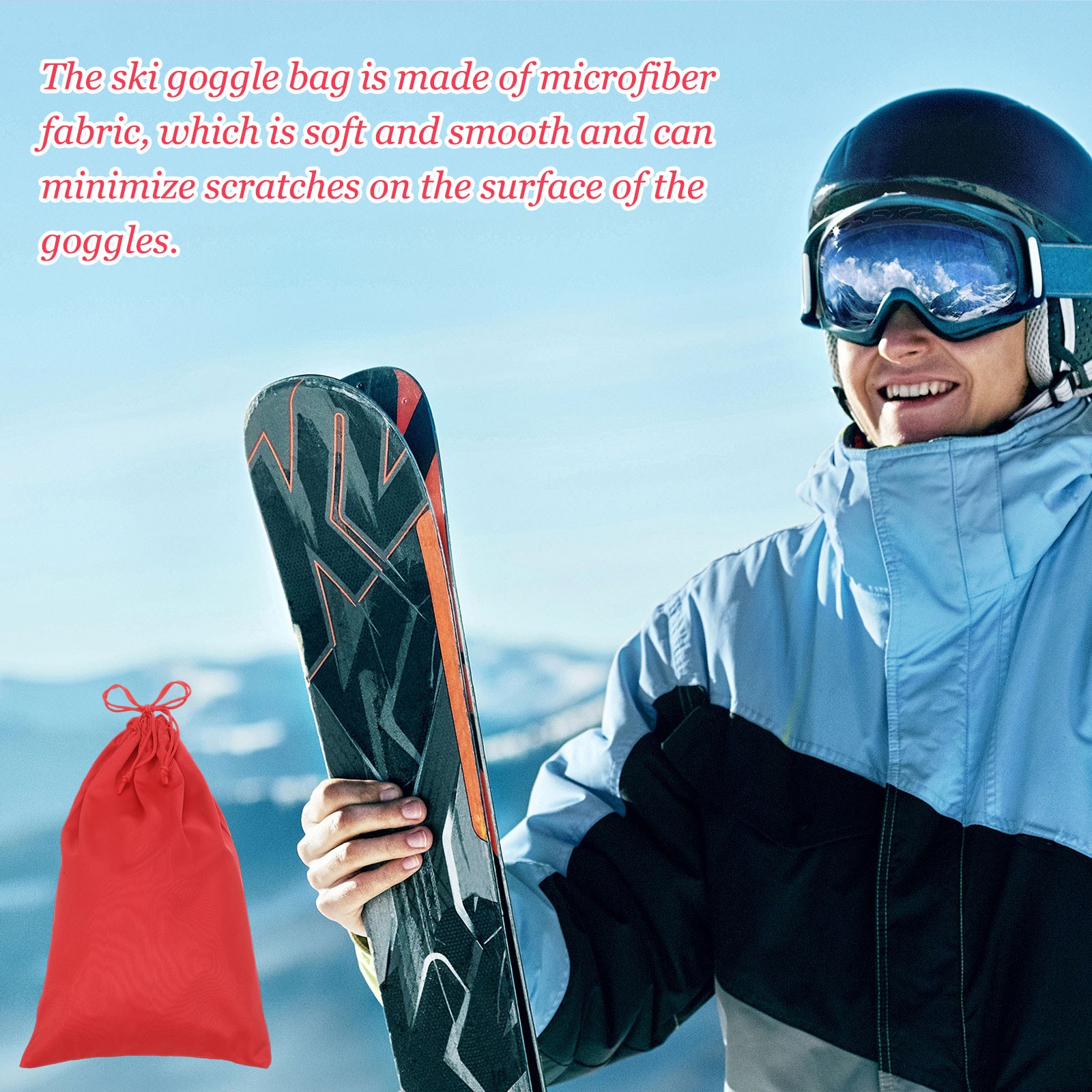 как выглядит Ski Goggle Bag, Microfiber Bag with Cleaning Cloth 2 Pcs Blue фото