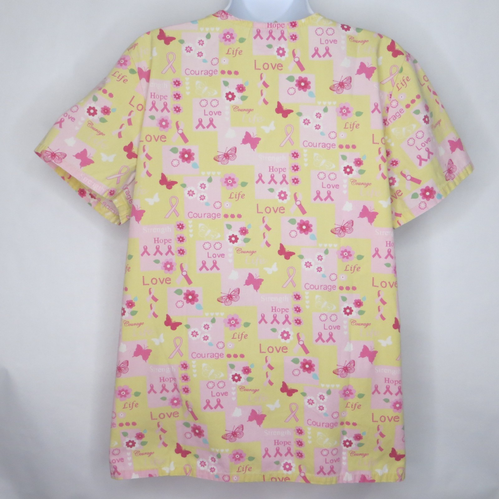 как выглядит Tafford Womens Medium Scrub Top Yellow Pink Breast Cancer Ribbons Medical фото