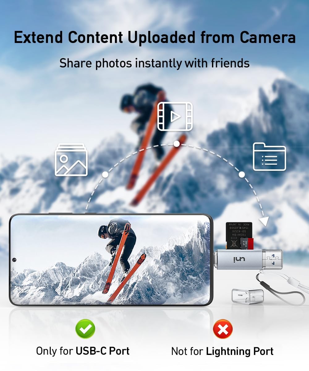 SD Card Reader, uni High-Speed USB C to Micro Adapter 3.0 Silver