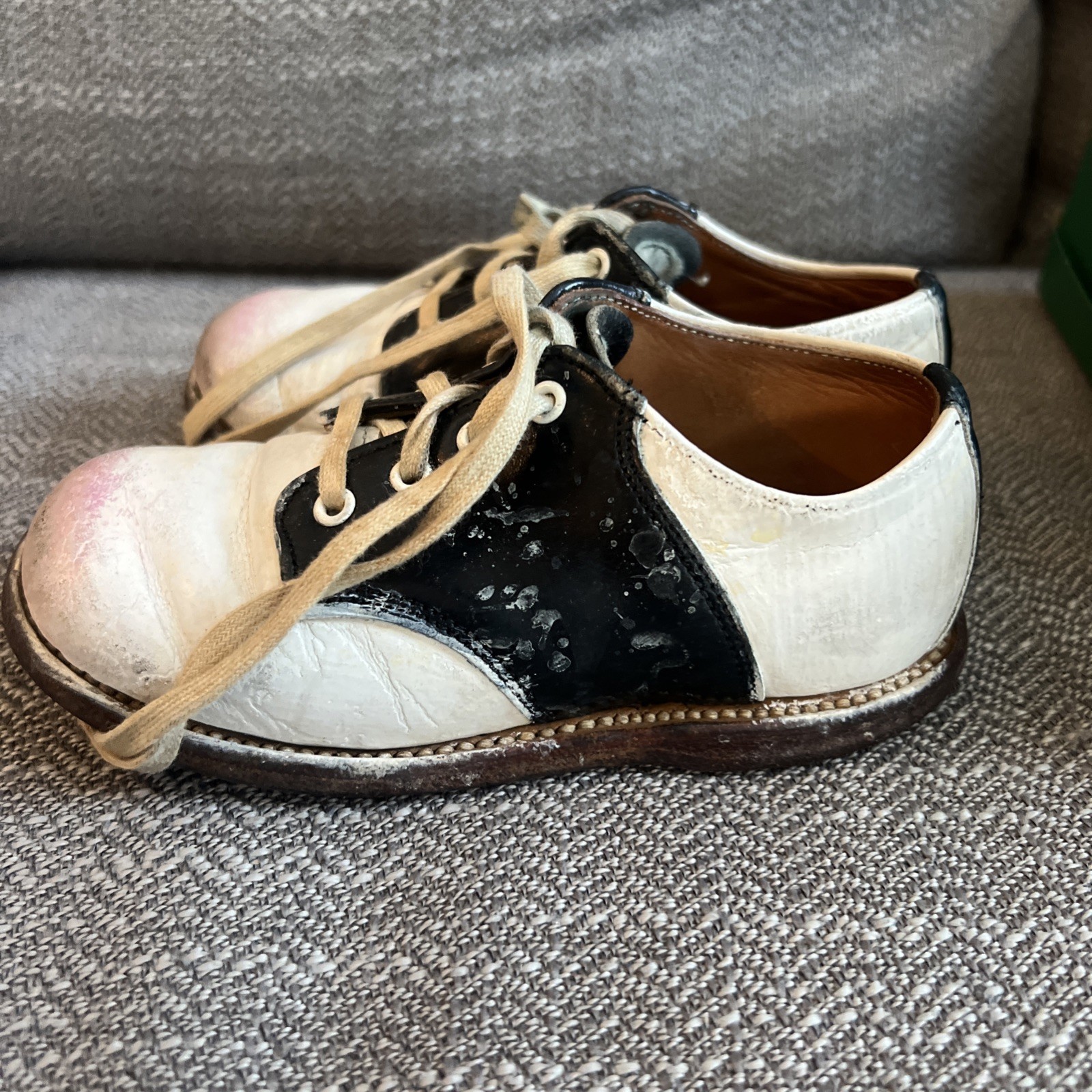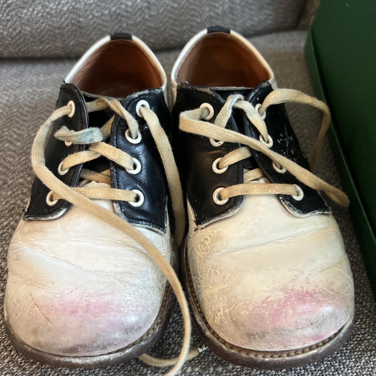 как выглядит Vintage Stride Rite Boys Saddle Oxford Shoes White Black Size 7C 1969 фото