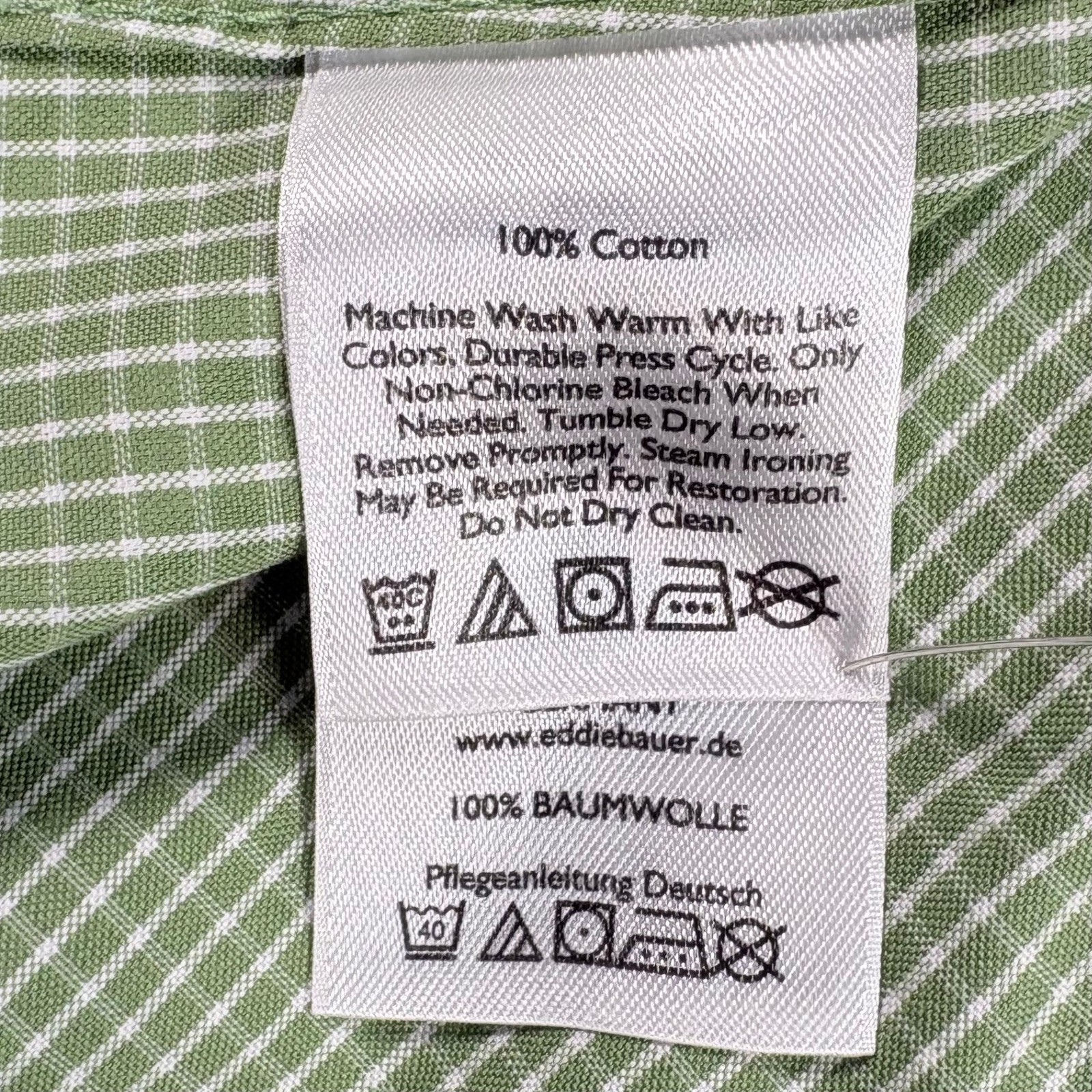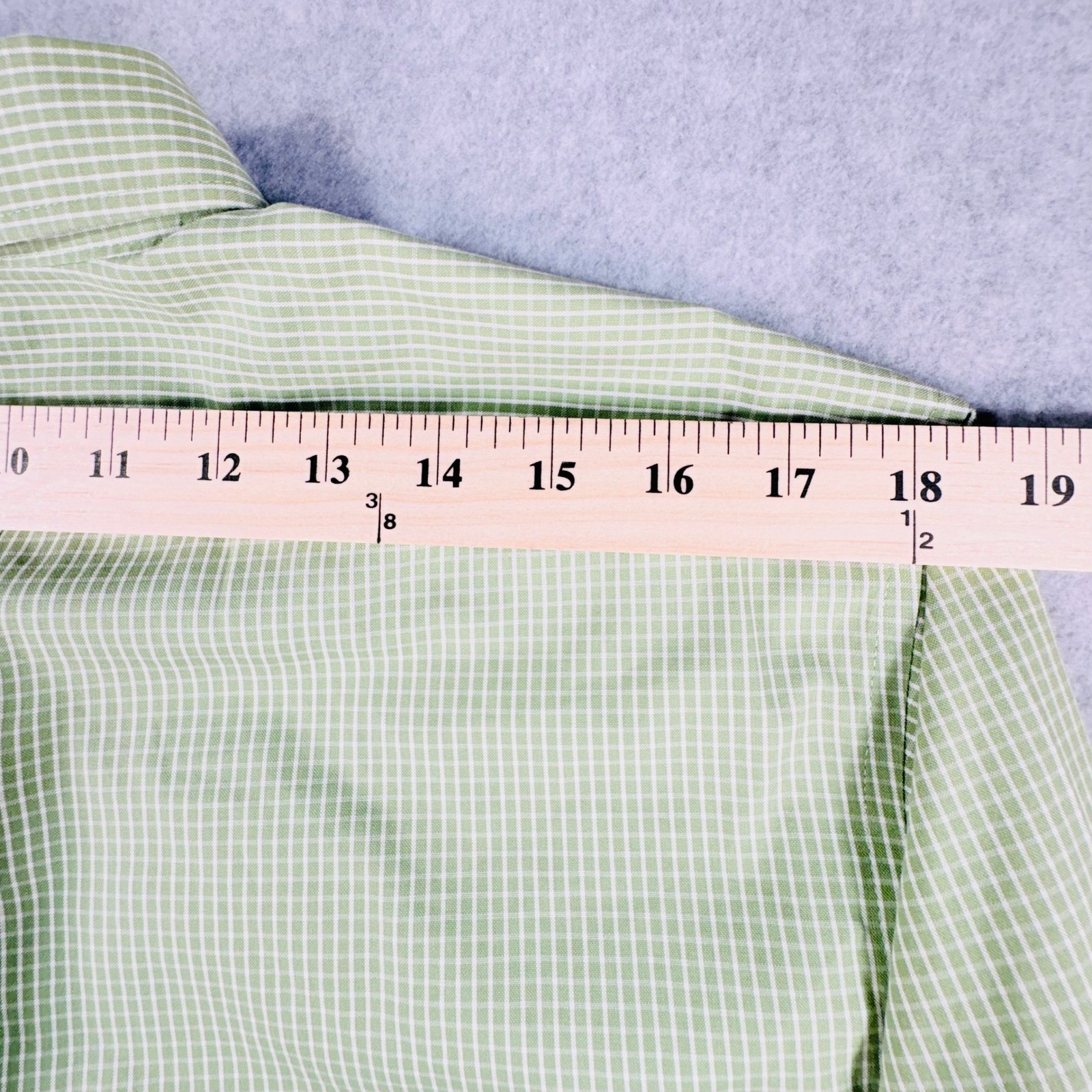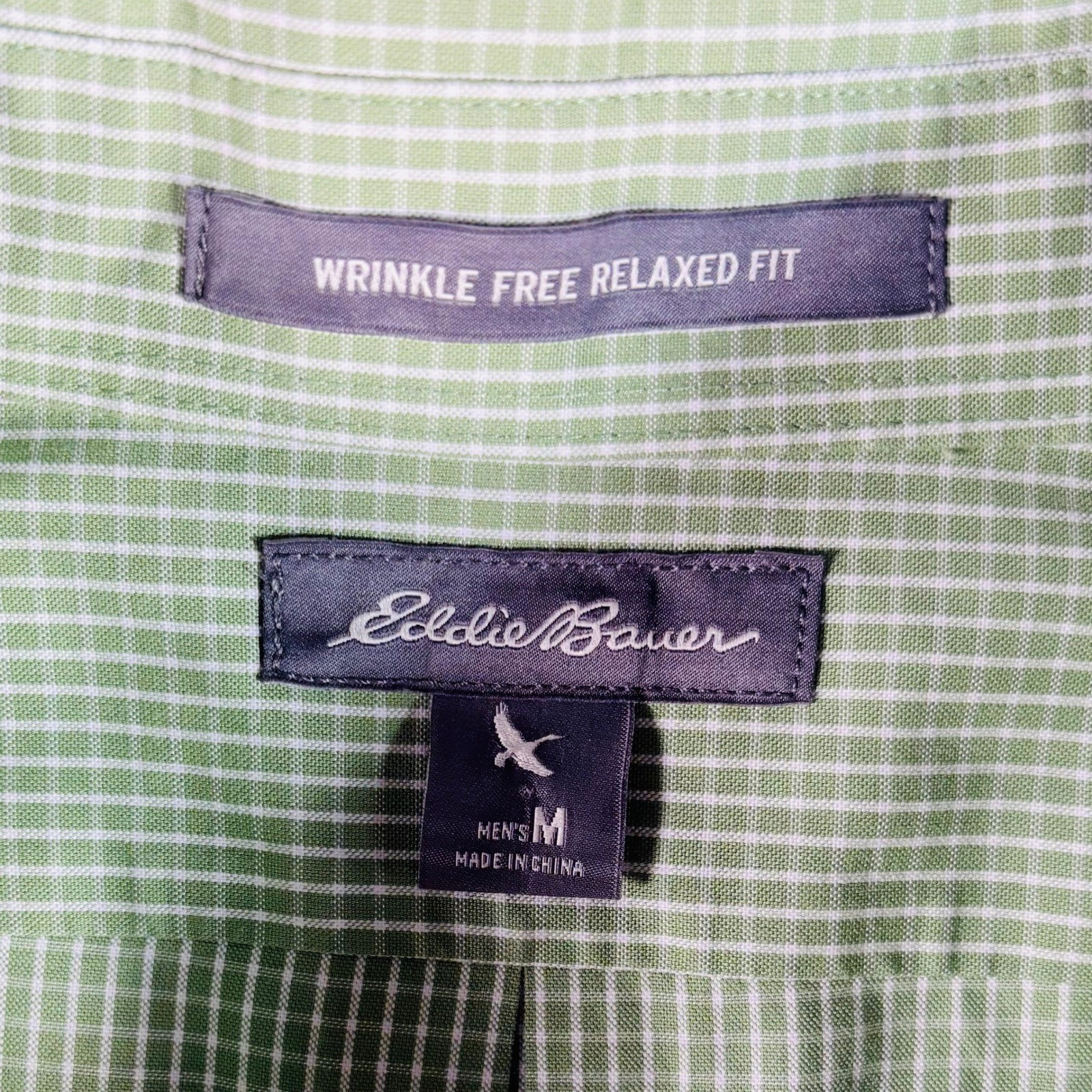 как выглядит Eddie Bauer Mens M Green White Check Relaxed Fit Wrinkle Free Button Down Shirt фото