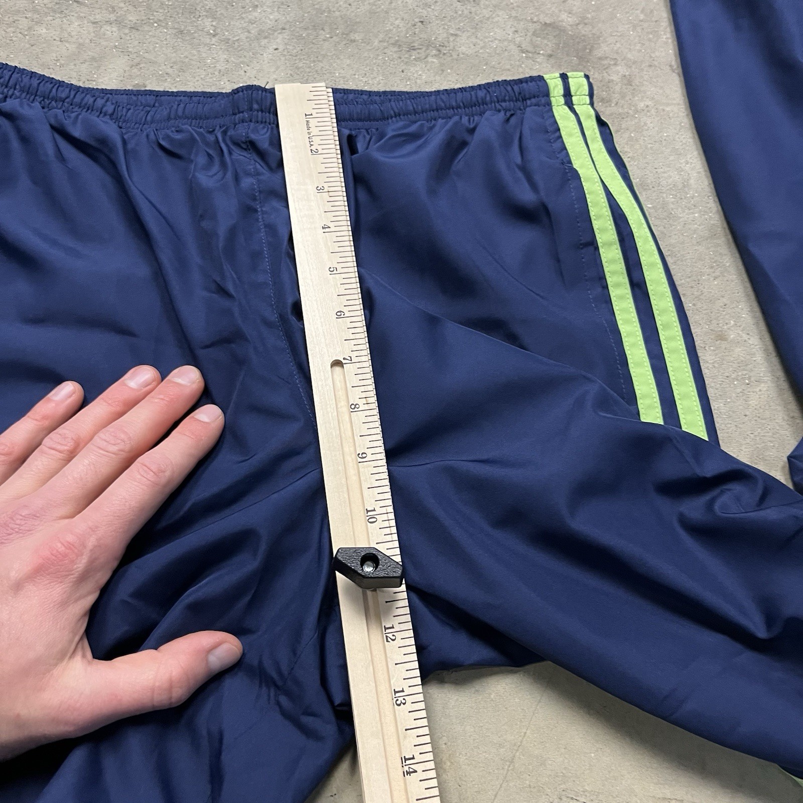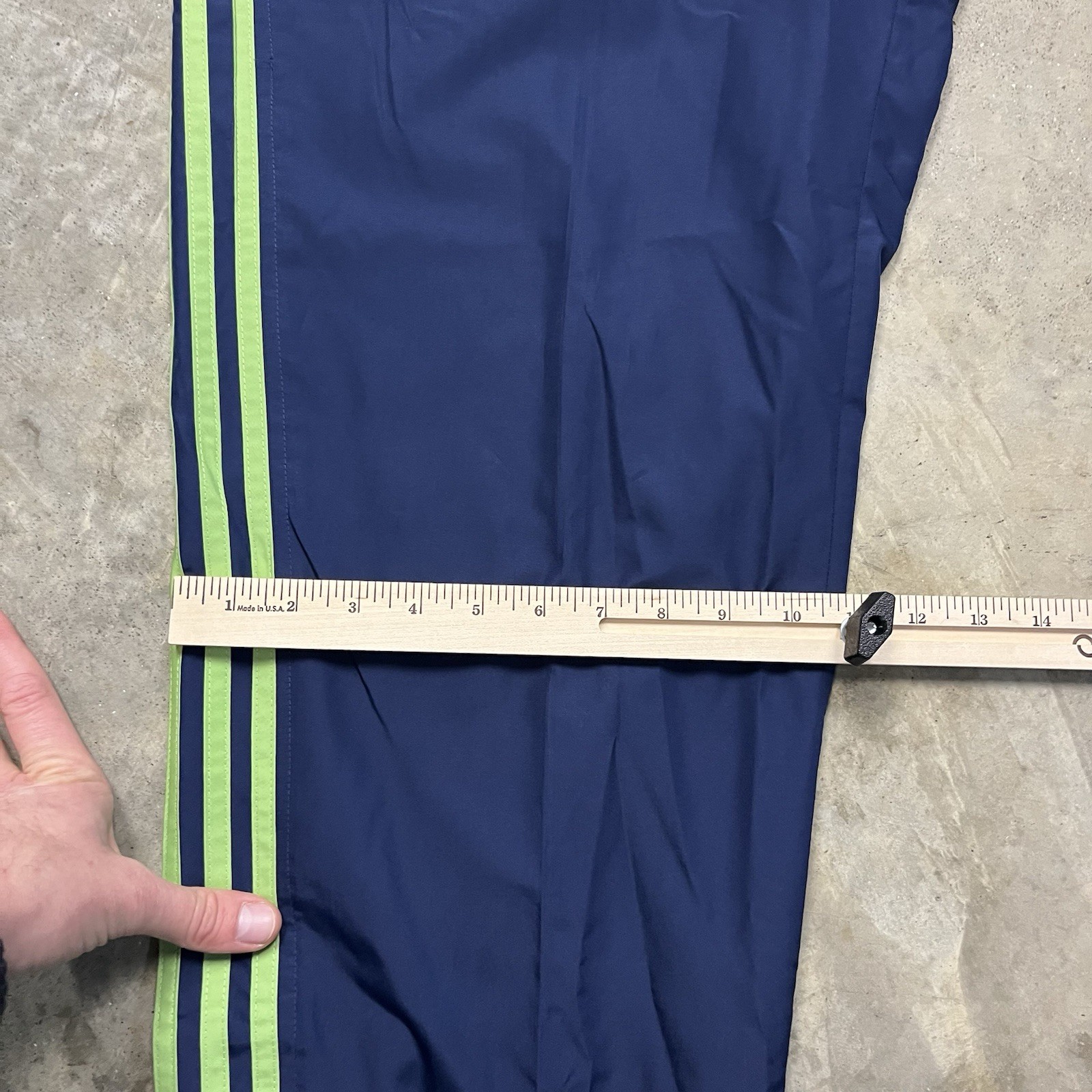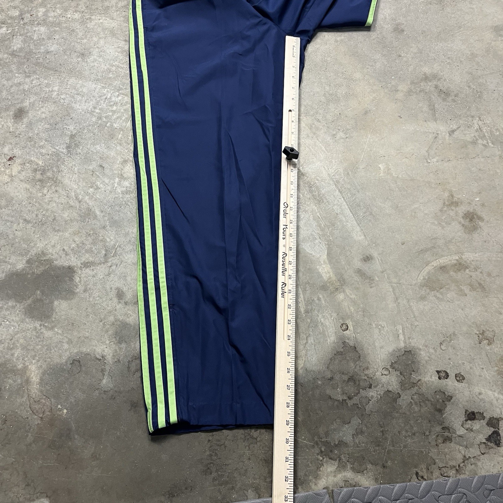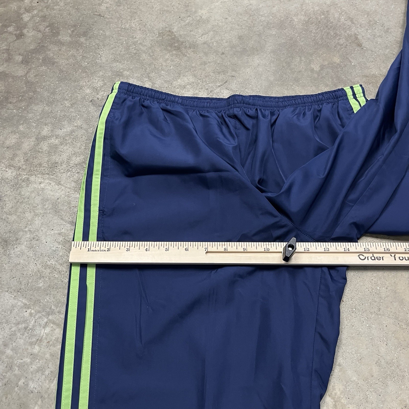 как выглядит VTG Adidas Windbreaker Nylon Track Pants Mens L Blue Green 3 Stripe Y2k Baggy фото