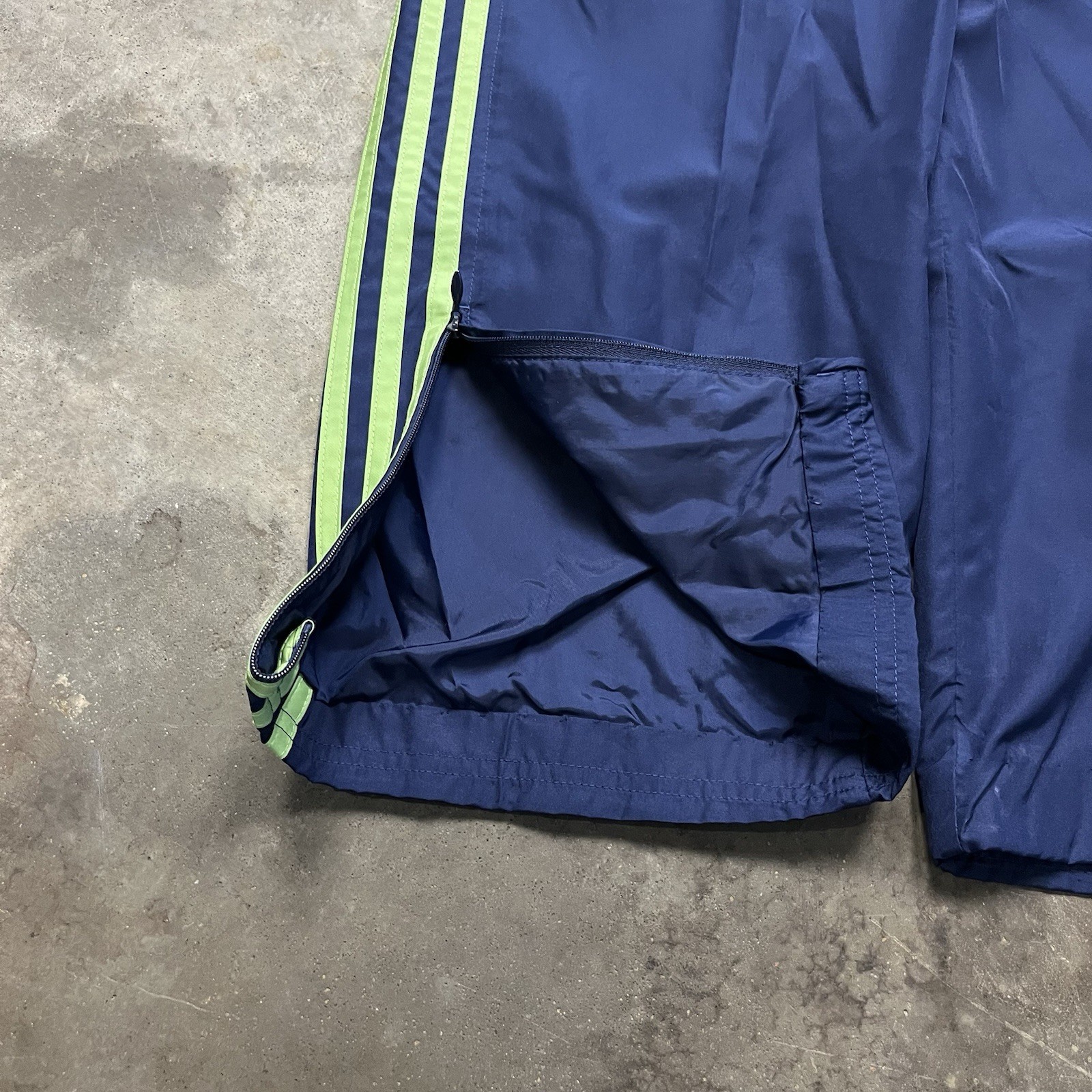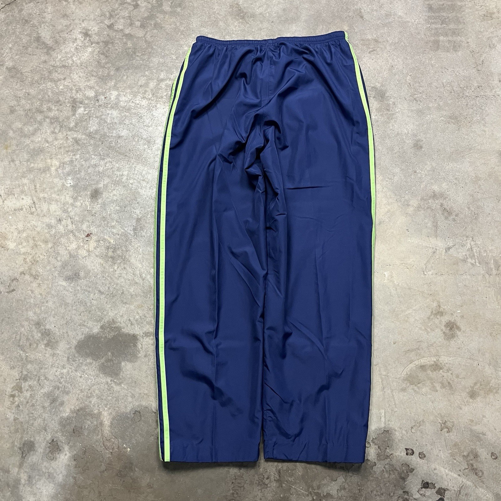VTG Adidas Windbreaker Nylon Track Pants Mens L Blue Green 3 Stripe Y2k Baggy