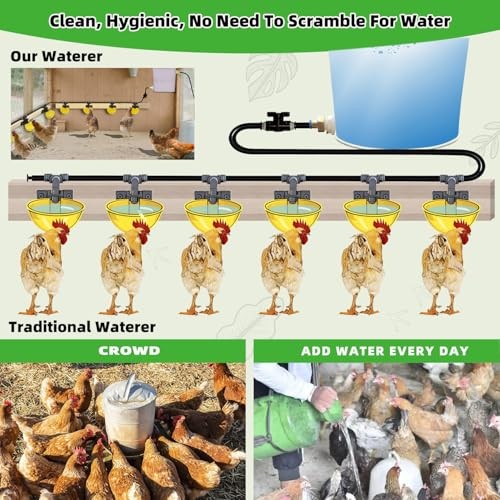 Complete Set Pipeline Automatic Chicken Waterer System, Innovative 6Cups Yellow