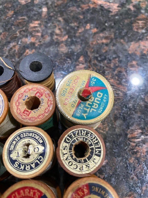 как выглядит Vintage Coats Clarks Wood Spools Partially Full and other Misc. spools фото